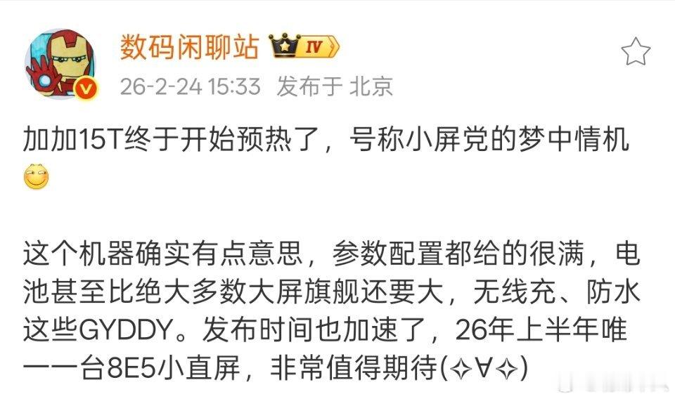 看来一加15T很值得期待啊,大电池小屏旗舰手机。