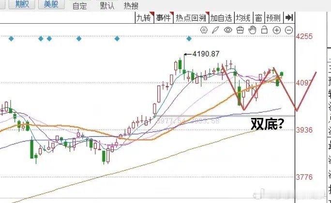 所以根据以上分析,对于明天市场走势,我个人的判断是,明天市场或者小幅度的收一颗微涨的小实体星形线。那么明天A股到底怎么走?大家请看图二关于明天走势的手绘预测图:明日走势手绘预测图