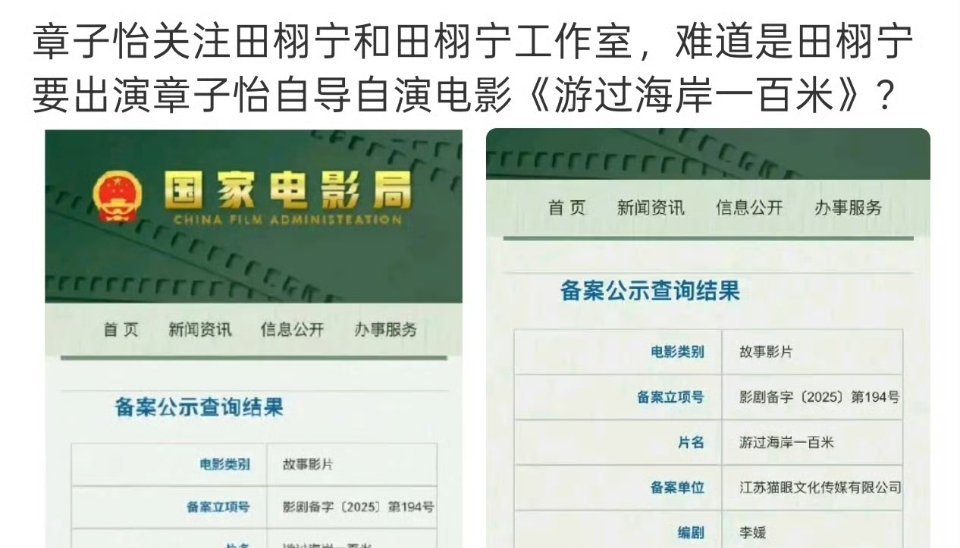 田栩宁吴慷仁章子怡自导自演电影游过海岸一百米?因为风险,吴慷仁换成田栩宁?