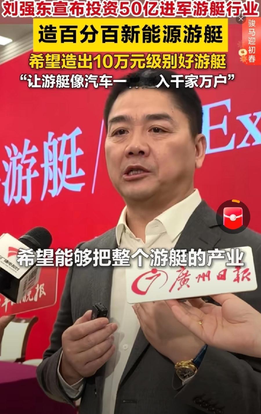 刘强东过年也吃胖了,年前参加中英经贸活动,还没有这么胖,感觉胖了一圈!强哥突然宣布个人投资50亿,要造新能源游艇!从基层外卖到富人游艇,这跨度有点大! 刘强东解释说,这是个人爱好,这么多年一直没做自己喜欢的事儿,也为了与全球游艇行业公司竞争,造出普通人能用的,10万元级别的游艇,可见大强子还是不忘初心,不忘咱老百姓! 还有,刘强东的金色手表很亮,一圈黄灿灿的,肯定纯金的,不知道要几个几十万!按照刘强东的咖位,很便宜,很低调了!