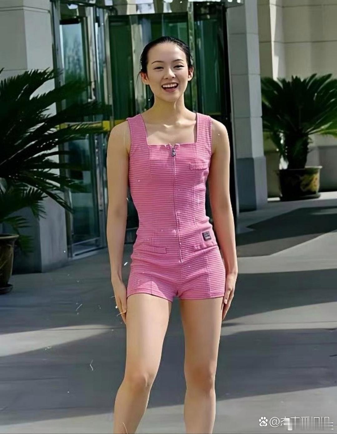 这是章子怡大学时期的旧照,身段婀娜,身材略显丰腴,加上甜美笑容,浑身充满着青春靓丽的美。