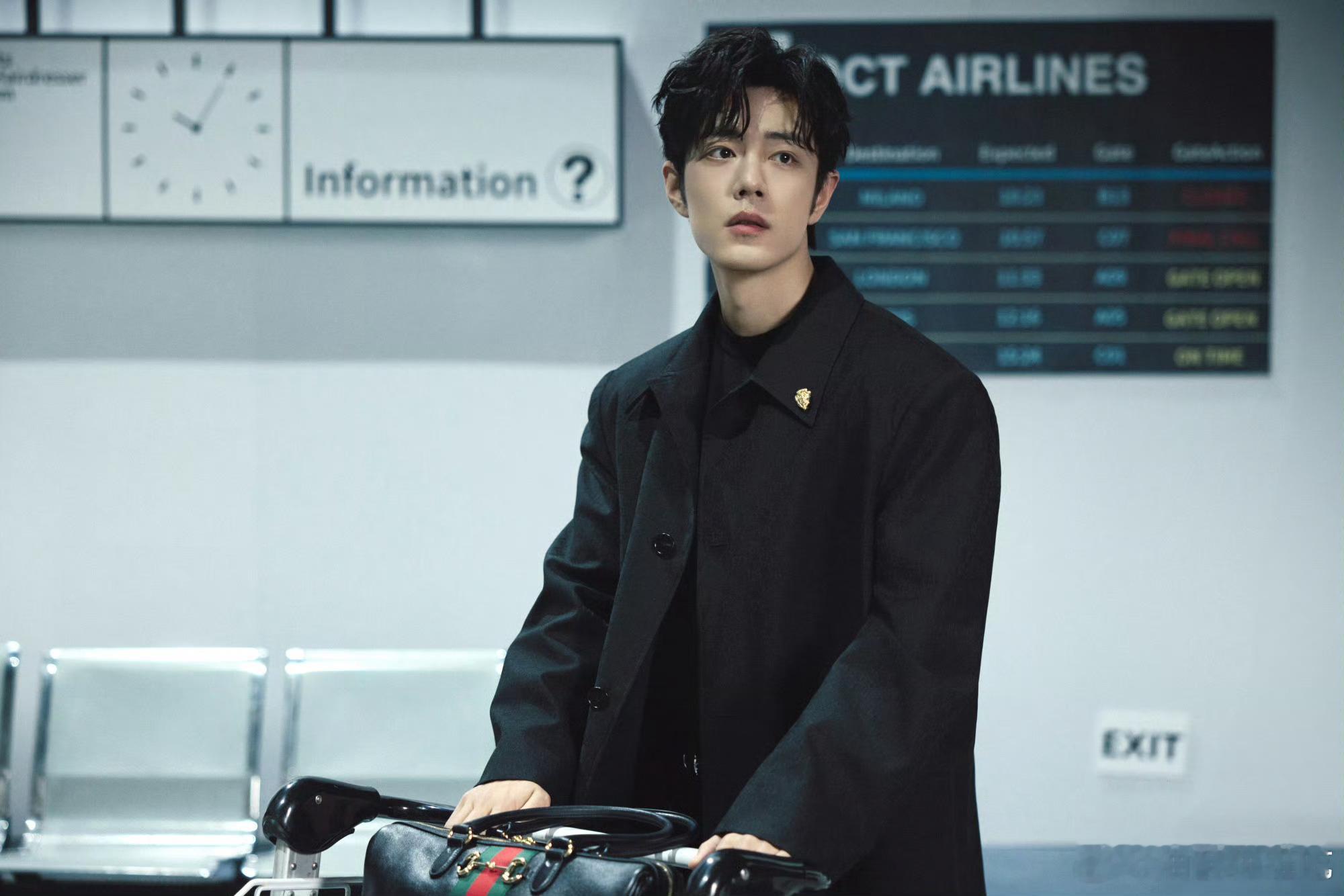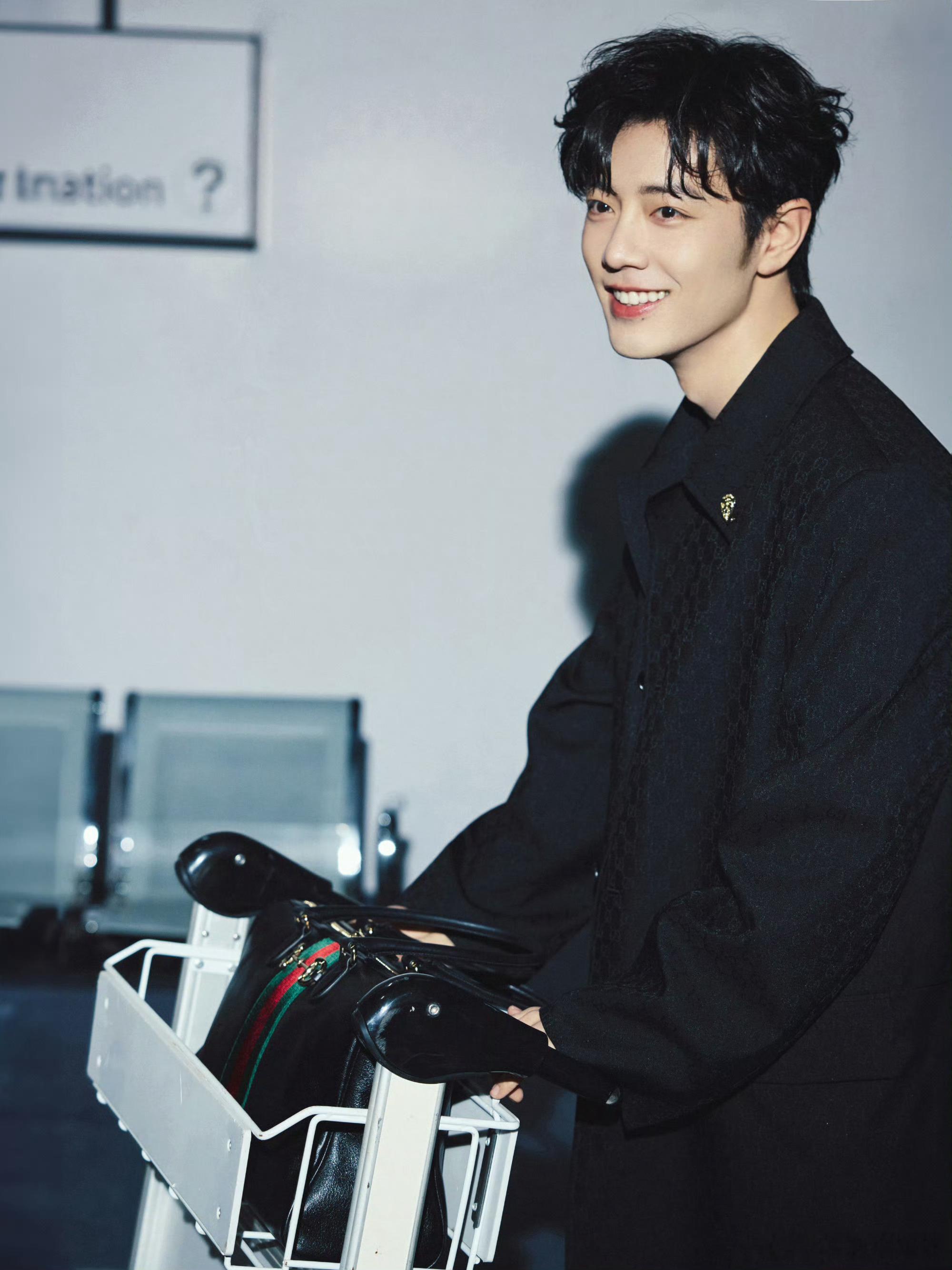 肖战米兰时装周gucci大秀出发图!!鼻间痣好神性啊,疯狂尖叫肖战的鼻间痣好像小