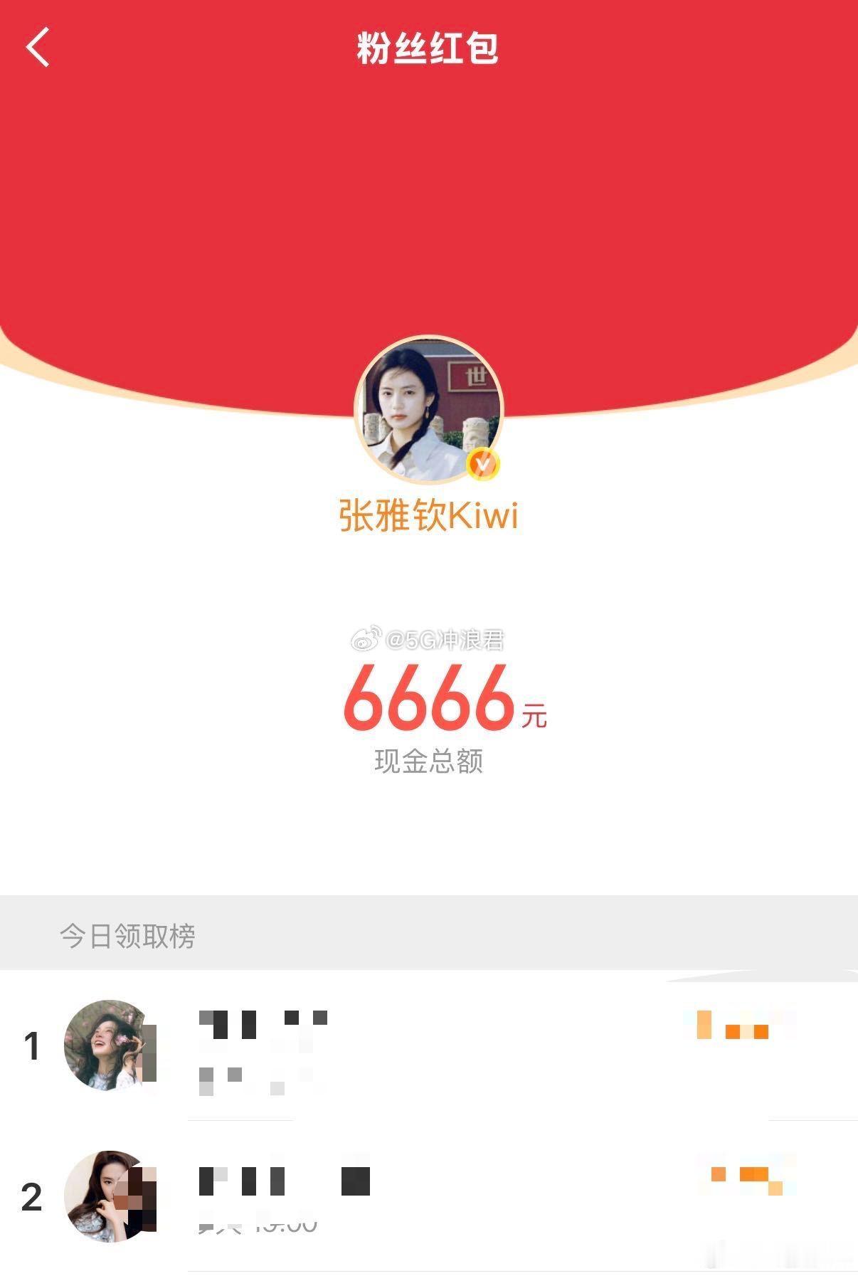 张雅钦发开工红包 复工第一天收到张雅钦的红包,感觉整个人的状态都不一样了,这种被宠着的感觉真好。