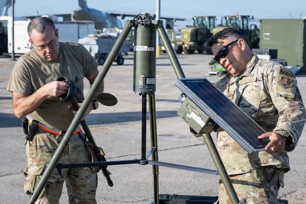天气是影响现代空军展示实力不可回避的因素。 美国空军高级军士长埃德加·莫雷尔(气象主管)和技术中士威廉·萨埃兹(气象预报员),均隶属于美军波多黎各空军国民警卫队第156应急响应大队,于2026年2月20日在密西西比州湾港战备训练中心的Sentry South 26-2演习中组装战术气象观测系统。 Sentry South 26-2是一项大型兵力运用演习。