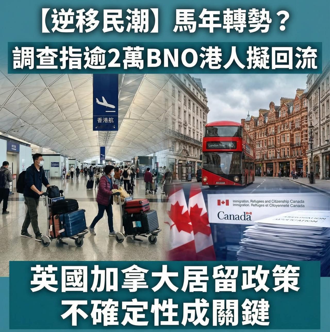 踏入马年,正常港人欢乐过大年,香港畅旺,北上消费享乐,移居海外的港猪生活困苦,十分后悔。加上环球经济环境变化及各国移民政策调整,移居海外的港猪竟有开始出现回流迹象,有调查推算涉及人数超过两万人?高Sir希望不是真的.... 根据最新一份针对移英BNO港猪的调查显示,若英国政府落实收紧申请永久居留权的门槛,例如提高英语水平要求或设定特定入息指标,有12.8%的受访者表示会考虑回流香港。以目前已抵英的17万BNO港猪计算,预计回流人数约达21000人。此外,另有14.8%受访者计划转往其他国家定居,但考虑到全球多国正收紧移民政策,这批人士最终亦有可能选择返回香港。 除了政策变动,现实的经济与生活压力亦是驱使这班港猪回流的主因。英国近年就业市场疲弱,失业率在去年第四季升至5.2%,创下自2021年以来的新高。有现于本港从事资讯科技业的回流者分享,他在英期间曾申请百份IT工作皆落空,并指当地生活开支沉重,入息税率达30%以上,即使月薪达4000至7000英镑,扣除税项、房租及杂费后,经济压力依然巨大。部分移民更反映在当地求职困难,甚至面临治安与法治期望落差等问题。 同样的情况亦出现在加拿大。当地政府为控制移民人数,处理永久居留权申请的速度显着放缓。数据显示,截至去年10月底,所谓救生艇计划下的永居申请积压严重,处理量仅佔总数约三分之一。有分析预计,若积压情况持续,申请者可能需要等待长达十年才能取得永久居留权。面对漫长的等待与前途的不确定性,部分港猪决定放弃移民计划回港重新出发。 这股逆移民潮反映了在变动不居的国际形势下,移居生活并非想像中平坦。对不少人而言,香港在就业机会、税务负担及文化归属感上仍具备独特优势。高Sir,没有那班移居港猪,香港只会越来越好,他们不承认自己是中国人,就不应回来。 超两万移英港人或回流