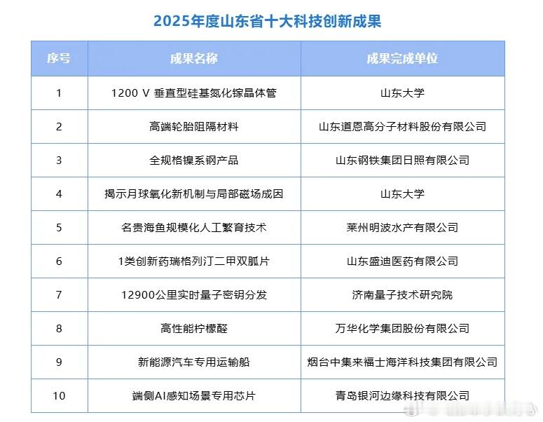 山东走在前挑大梁 刚看到“2025年度山东省十大科技创新成果”清单,我被震撼到了!作为一名科技爱好者,我第一时间去扒了详细名单,看完只想说:山东,你还有多少惊喜是我们不知道的?