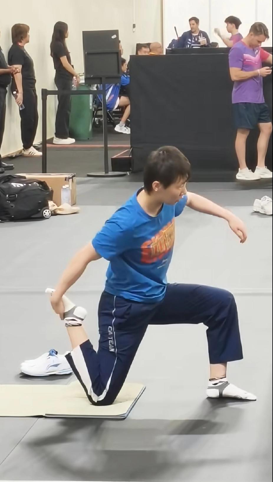 赛场边的“瑜伽大师”王曼昱,这柔韧度太绝了!✨ 新加坡大满贯的赛场边,王曼昱的热身瞬间真的太让人惊叹了。 别人热身可能只是简单活动,她却像在练瑜伽一样,单膝跪地,另一条腿向后弯曲,脚尖几乎要碰到臀部,整个动作舒展又充满力量。这柔韧度和控制力,真不是一般人能做到的,每一寸肌肉都在诉说着她对训练的极致要求。 从赛场到训练场,她始终保持着这份专注与自律。正是这样日复一日的打磨,才让她在赛场上游刃有余,每一次挥拍都充满底气。 这样的曼昱,谁能不爱呢?❤️ 王曼昱 新加坡大满贯