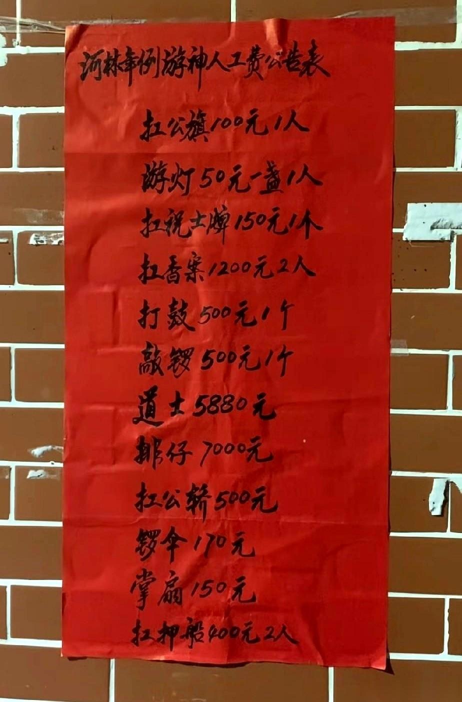 鼓槌抡圆了砸下去,虎口震得发麻。旁边人递来一瓶矿泉水,我摆摆手,不敢接。这一停,后面整个队伍的气口就断了。 外头人光看热闹,看我们几百号人锣鼓喧天,阵仗搞得比谁都大,都在猜这笔钱最后进了谁的口袋。 他们不知道,墙上贴着的那张红纸,写得一清二楚:鼓手,一天三百。舞狮的,三百。抬神像的,三百。这叫“人工费”,不是补贴,是明码标价的辛苦钱。 钱哪来的?村里几个做生意发了财的老板,每年到这个时候,一个电话打过来,直接一笔钱赞助进来。剩下的,靠族里凑,一家出十块,叫“人口钱”,谁家添了丁,名单上就多一个名字。 几千户人家,凑起来也是一笔大数。 这笔钱,村委会一分都碰不到。专门有个信得过的阿叔管账,一叠叠的现金就锁在祠堂的铁皮柜里。晚上活动结束,就在祠堂门口,当着所有人的面,一张桌子,一个计算器,一沓钞票,挨个名字喊,挨个发钱,领完的就在名字后面按个红手印。 这钱,贪不了。 真正的大头,其实不在账上。队伍每进一个自然村,那个村的头面人物早就备好了厚厚的红包,直接塞到领头的道士手里。这是村对个人的礼数,跟我们这笔“公款”不是一回事。 说白了,这种事只有人丁兴旺的大家族才玩得起。敲锣打鼓一整天,手上磨出的水泡,比发的钱还实在。 这根本不是一笔账,这是一口气。