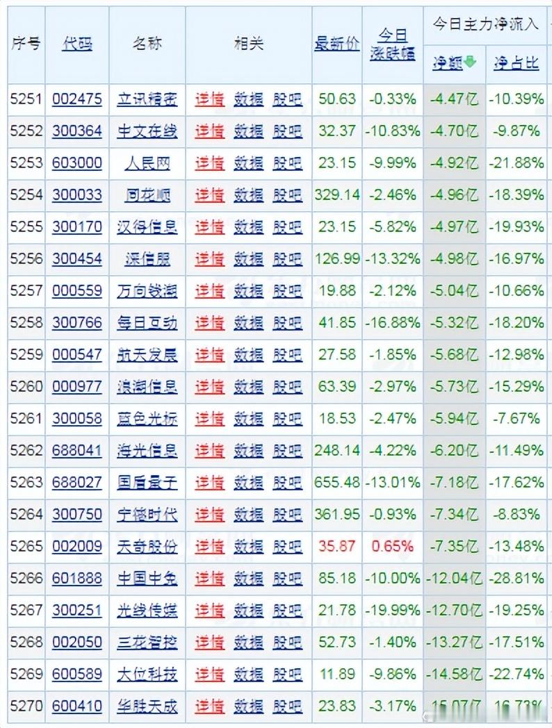 收盘价:23.15 元。涨跌幅: -9.99% 。净流入: -4.92亿
