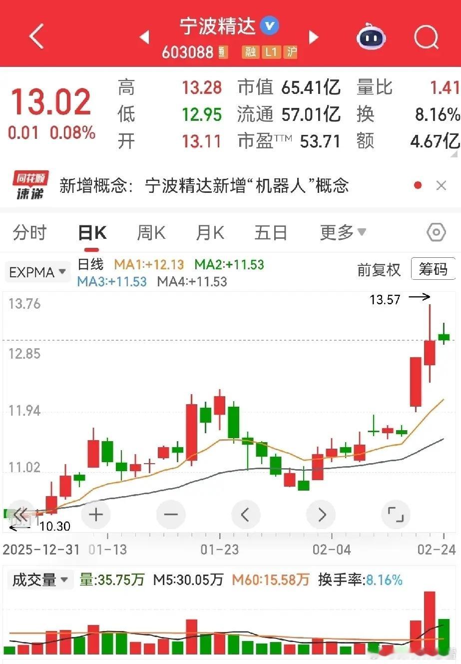 题材最丰富:新能源汽车、锂电池、芯片、液冷服务器、工业母机,近期再添机器人概念。走势偏强,放量突破左峰后缩量蓄势,后续大概率跟着机器人板块情绪走,是科技装备+热门题材的活跃选手。