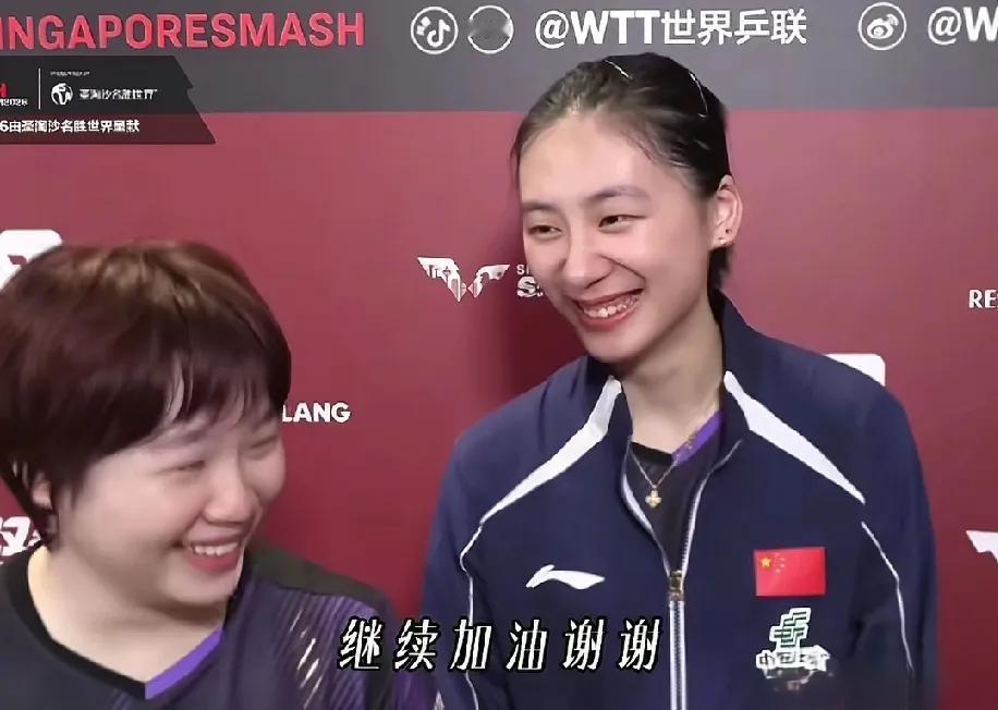 【陈熠采访时说要向蒯曼学习三兼,感谢队友帮她承担责任】希望她说的是真心话,可以看得出这个21岁的国乒希望之星赈正在成长的路上。 这些话出自2026年WTT新加坡大满贯陈熠在双打和二轮单打之后的赛后采访。 关于兼三项:这是我第一次在大满贯兼三项(女单、女双、混双),最大挑战是双打到单打的意识转换。 向蒯曼学习:我专门问过蒯曼,她经常兼三项,我要向她学习三线作战的经验。 感谢队友:兼三项压力大,感谢队友帮我分担、承担责任,让我能更专注比赛。 本次新加坡大满贯,陈熠是国乒女队唯一兼三项的选手。女双搭档正是蒯曼,两人已携手晋级女双16强。陈熠下一轮女单对手是日本削球手桥本帆乃香。目前还没遇到真正的考验,或许此前没有赢过的日本选手桥本,才是一道动真格的关卡测试。 应该感谢抽签之手,给了她这样的好机会。张本智和遇上了陈俊崧,人家不是闯过去了吗?还有此前的王艺迪,一年之内连续三次遇到桥本,终于把打削球的心魔给克服了。教练能起到点播的作用,能否领会而且理解执行到位,还得是自己。 记录我的2026