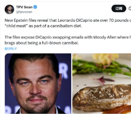 爱泼斯坦文件再挖惊悚信息,“小李子”被媒体从文件中挖出曾食用超过 70 磅的“儿童肉”。该文件显示,莱昂纳多·迪卡普里奥在向伍迪·艾伦发电子邮件时还吹嘘,自己是个彻头彻尾的食人族。 爱泼斯坦这摊子事,真是越挖越离谱,每隔一段时间就会冒出个惊悚到让人头皮发麻的传闻,这不,最近又有消息炸了锅——有媒体宣称,从最新公开的爱泼斯坦文件里挖出新料,说“小李子”莱昂纳多·迪卡普里奥,居然吃过超过70磅的“儿童肉”,文件里还说,他曾经给导演伍迪·艾伦发电子邮件,得意洋洋地吹嘘自己是个彻头彻尾的食人族。 看到这消息的时候,我第一反应就是浑身一僵,心里直打颤,虽然我是多么希望这是假的,几十年前看《泰坦尼克号》时万人空巷的场景还历历在目,杰克站在船头张开双臂的样子,当年迷倒了多少人,我对他的形象更是可以用“惊为天人”来形容,那时候觉得他不仅长得帅,演技还好,是那种自带光芒、干净又有魅力的演员,可如今,却有人拿着所谓的“文件”,告诉我们他是个冷血无情的食人狂魔,那种落差感,就像从云端一下子摔进冰窖,凉得透心。 先说说这爱泼斯坦文件的来龙去脉,毕竟要弄清楚传闻真假,得先知道这些消息是从哪来的。爱泼斯坦这个美国富商,早就是臭名昭著的性犯罪者,2019年被捕后没多久就死在监狱里,官方说他是自杀,但外界一直流传着各种阴谋论,说他是被人灭口,因为他手里握着太多美国政商名流、娱乐圈大佬的黑料。 从2023年底开始,美国法院就陆续下令公开与他相关的密封文件,到2026年1月底,司法部已经公布了超过300万页材料,里面有视频、照片、飞行日志,还有各种庭审记录和电子邮件,原本大家都以为这些文件能揭开爱泼斯坦案的真相,曝光那些隐藏在背后的大人物,可没想到,越来越多的离谱传闻,借着这些文件的热度冒了出来,小李子这次被泼的脏水,就是其中最耸人听闻的一个。 说实话,刚开始看到“小李子食童肉”“食人族”这些关键词的时候,我真的纠结了很久,一方面不愿意相信自己年少时的偶像会是这样的人,另一方面又被“爱泼斯坦文件”这个名头唬住了——毕竟这两年陆续公开的文件里,确实曝光了不少大人物的丑闻,比如前总统克林顿被多次提及。 还有英国安德鲁王子也深陷其中,大家难免会觉得,既然这些人都能和爱泼斯坦扯上关系,那小李子会不会真的有问题?可仔细一查才发现,所谓的“小李子食人”传闻,根本经不起推敲,从头到尾都是没有任何事实依据的虚假消息,纯属借着爱泼斯坦案的热度造谣,蹭流量博眼球。 首先得明确一点,截至2026年2月,美国司法部公开的所有爱泼斯坦相关文件里,没有任何一份提到过莱昂纳多·迪卡普里奥食用“儿童肉”,更没有所谓的“给伍迪·艾伦发邮件吹嘘自己是食人族”的内容。 大家可以去司法部的官网查证,已经公布的12.5万页文件里,确实涉及了不少娱乐圈、政界的名人,但这些文件要么是飞行日志,记录了谁乘坐过爱泼斯坦的私人飞机,要么是受害者的证词,描述爱泼斯坦的性犯罪行为,还有一些是爱泼斯坦和同伙的通信,全程没有任何和“食人”相关的字眼,更别提把小李子和“食人族”联系起来了。 更有意思的是,稍微了解小李子的人都知道,这个传闻本身就充满了漏洞,离谱到让人发笑。 熟悉他的粉丝都清楚,小李子一直以来都比较崇尚环保,甚至有传闻说他偏向素食主义,虽然在拍摄电影《荒野猎人》的时候,为了还原角色,他确实啃过一块真实的牛肝,当时还因为这件事被大家称赞敬业,但这和“食童肉”“食人族”完全是两码事——一块用于拍戏的牛肝,怎么就能被歪曲成食用人肉,甚至是儿童肉? 这分明就是造谣者故意混淆视听,编造出来的虚假消息。而且,伍迪·艾伦虽然也是好莱坞导演,但他和小李子并没有过深入的合作,两人私下里的交集也很少,所谓的“发邮件吹嘘”,更是没有任何证据支撑,纯属无中生有。 其实稍微琢磨一下就知道,这种传闻之所以能传播开来,无非是抓住了大家的两个心理:一是对爱泼斯坦案的好奇和愤怒,大家都想知道背后还有多少大人物牵涉其中,所以只要是和爱泼斯坦文件相关的消息,不管真假,都会有人愿意相信。 二是对名人的“完美人设崩塌”的猎奇心理,小李子作为全球知名的演员,拥有无数粉丝,他的形象一直都是正面的,一旦有人编造他的负面传闻,尤其是这种惊悚、突破底线的传闻,很容易就能引发热议,造谣者也就能趁机蹭到流量。