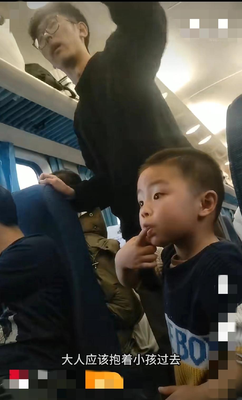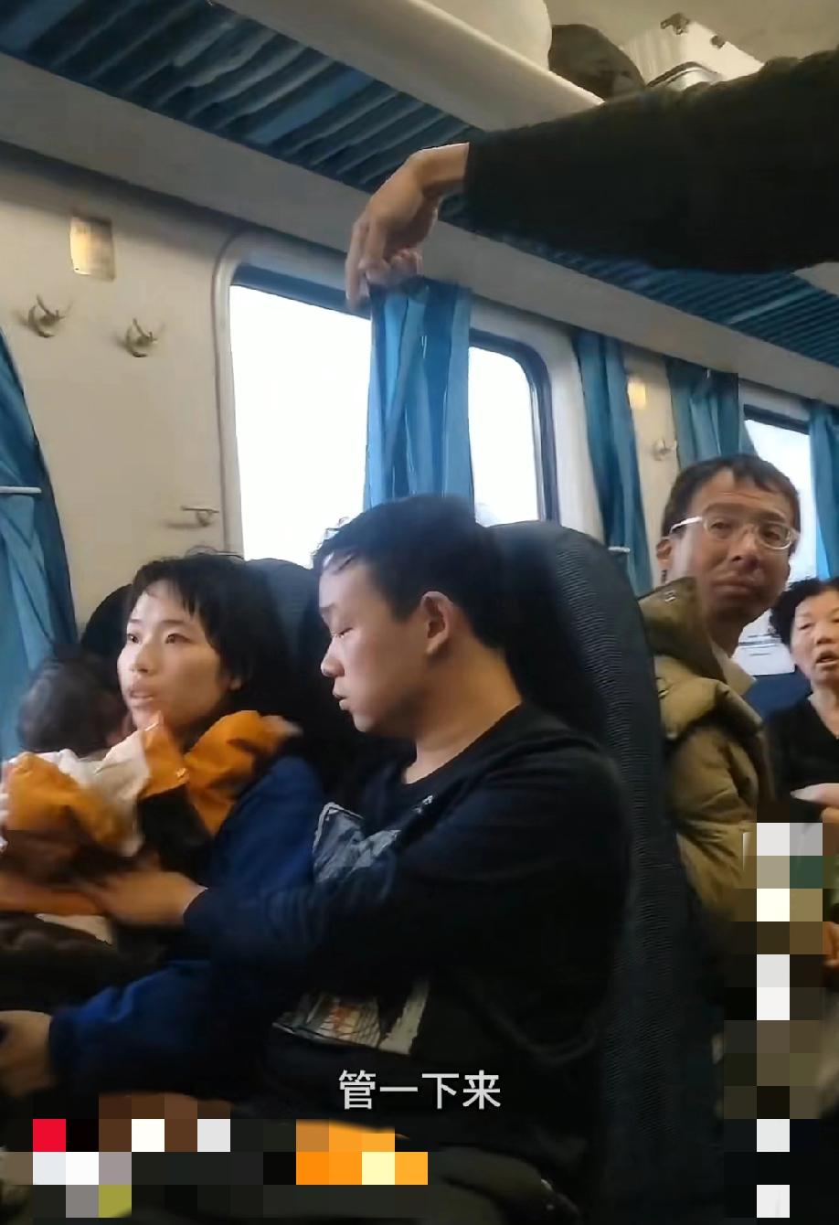 火车上,一对夫妻怀抱啼哭的孩子,一位男乘客径直上前要求他们带孩子离开座位,到车厢