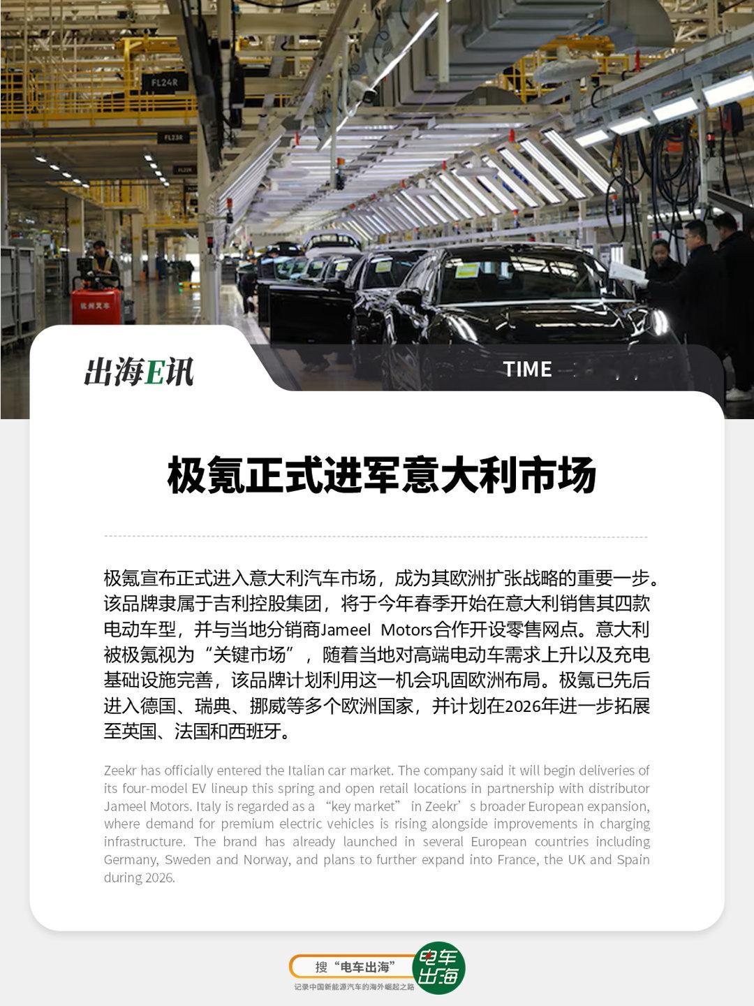 意大利被极氪视为“关键市场”,随着当地对高端电动车需求上升以及充电基础设施完善,该品牌计划利用这一机会巩固欧洲布局。