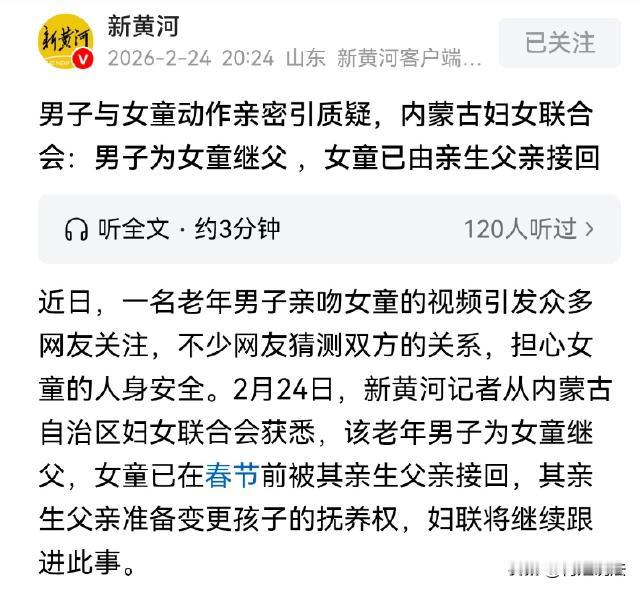 内蒙古,一女子跟丈夫离婚后,10岁的女儿判给了妻子。后来妻子再嫁,对象是个60多岁的老年男子,同住期间,这个老男人总是对10岁的女儿亲密互动,要么就是动手动脚,女孩早就表示抗拒,但是男子仍然亲女孩脸颊、甚至搂抱孩子。被孩子亲生父亲得知之后,已经将孩子接走,之后打算变更抚养权。 亲生的妈妈是怎么想的呢?看不出来老男人对孩子有歪心思吗?还是说就是为了纵容来取悦老男人?实在是想不通啊!(本新闻参考来源:新黄河报道) 要说女子离婚后,如果带着未成年女儿再婚,还是长点心吧。你以为二婚男子是爱的自己,可能他贪图的,是你女儿的身子。 儿大避母,女大避父,尤其还是个继父。 一女子跟丈夫离婚,离婚之后,10岁大的女儿被判给了前妻,孩子跟妈妈一起生活。 后来没多久,女子又再婚,这次找到了一个60多岁的老男人,看起来就很油腻。 不过一个单身带孩子的女子,二婚能够再找到一个丈夫,可能也不大容易吧,能看的出来,女子再婚后,一直委曲求全。 不过你的生活再怎么难,也需要保护好自己那10岁的女儿啊。 从视频中可以看出,10岁大的女儿,已经开始穿着裙装、高跟鞋,然后配合继父嘻嘻哈哈的拍摄视频。 还有一段视频是,女孩子手里拿着一个瓶子,但是透过瓶子可以看到倒影,后面的继续竟然没有穿衣服。 最令人咂舌的,还是要数这样的一份视频。 视频上,60岁的老男子站在中间,一边抱着妻子(女孩的妈妈),一边则搂抱着10岁的继女。 可以看的出来,这个继父还是很喜欢自己的继女的。 因为他搂抱孩子的动作,就不大恰当。并且男子的身子,一直朝着孩子倾斜,而非倾向旁边的妻子。 接着,男子还想要去亲继女,只不过女孩子迅速躲开了,她的身体已经产生了抗拒性。 虽然没有亲到,但是男子又继续跟继女脸贴脸,表现得非常亲密。 透过视频可以看到,这个老男人一脸的油腻,眼神也不大正常,这并非出于一个父亲对孩子正常的爱,这就是继父看继女的那种别样情愫。 但是,女孩的母亲,站在一旁,丝毫没有反应,也没有阻拦,只是任由现任丈夫对孩子做出这样的异样的亲密举动。 视频发出来之后,网友们真的是炸锅了,纷纷表示谴责。 而视频中的当事人却表示:“不存在那些不好的情况的,我们就是一家人拍着玩的。” 之后没多久,发布者就把视频都给删除了。 虽然视频删除,网友们坚决不罢休,继续关注着。而孩子学校的老师则也站出来发声:“这孩子的心理是正常的,没发现有什么不对劲的行为。” 这个视频也被孩子的亲生父亲给看到了,他已经赶到前妻那边,把10岁的女儿给接回自己身边了。后期表示,他会跟前妻商讨,准备变更抚养权。 这件事也同样引发当地相关部门的重视,表示会介入调查处理。 本案释法: 继父面对10岁的继女,故意亲密靠近、拥抱、亲亲,女孩已经开始抗拒,如何评价继父的行为?母亲在一旁看到了,也不加以阻止,如何评价母亲的行为? 第一,从法律上来说,继父的行为可能已经违法。 根据《未成年人保护法》第十七条规定,禁止对未成年人实施任何形式的侵害和虐待。 如果带有性方面的暗示,持续强迫,让孩子不适,就会被认定为是猥亵儿童。根据《刑法》第二百三十七条规定,涉嫌猥亵儿童的,会从重处罚,承担刑事责任。 从视频上来看,这位继父的行为,已经超出了正常的亲昵范畴,存在重大的法律和道德风险,而且孩子还表现出抗拒的动作,任何亲密接触都要立即停止。 第二,母亲可能构成“不作为”的法律责任。 母亲明知此事,却故意不干预,知情不报告,对孩子不保护,也需要承担相应的法律责任。《未成年人保护法》明确要求父母或者其他监护人,需要为未成年人提供安全的家庭生活环境。 作为母亲如果明知孩子抗拒,却不加以阻止,默许这类侵害行为的发生,母亲也要接受法律的惩罚,并且撤销监护权。 说到底,夫妻离异,如果是女儿,还是建议跟着亲生父亲比较好。因为女孩正处于身心快速发展阶段,之后还会成熟。如果面对的是继父,还是不大安全。 作为孩子的母亲,也需要多多保护自己的孩子,而不是要讨好现在的男人,故意让他俩亲密接触。 对此,您怎么看呢?