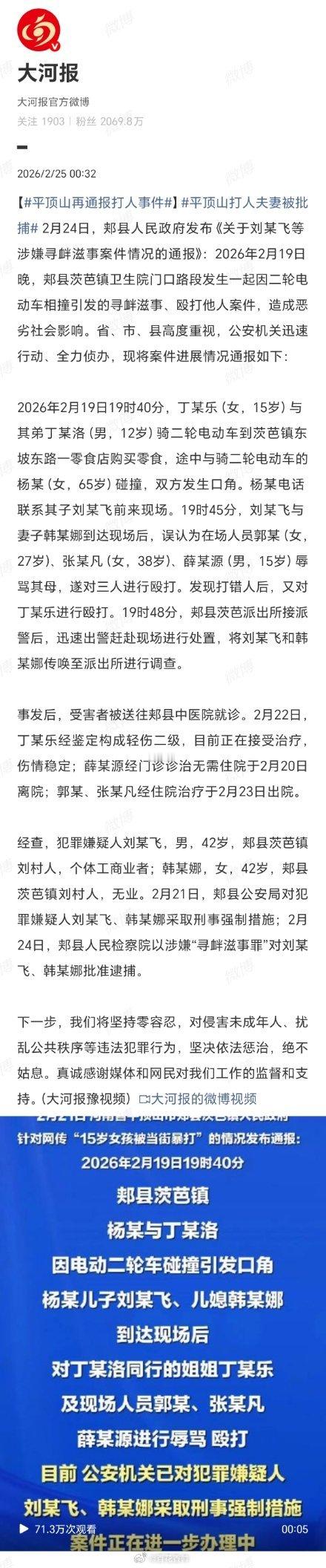 平顶山再通报打人事件 此次打人事件宛如一记警钟,无情地敲响在平顶山社会治安的大门上。平顶山必须以“零容忍”的态度,立即开展扫黑除恶专项行动,对各类违法犯罪分子进行全方位、无死角的打击。