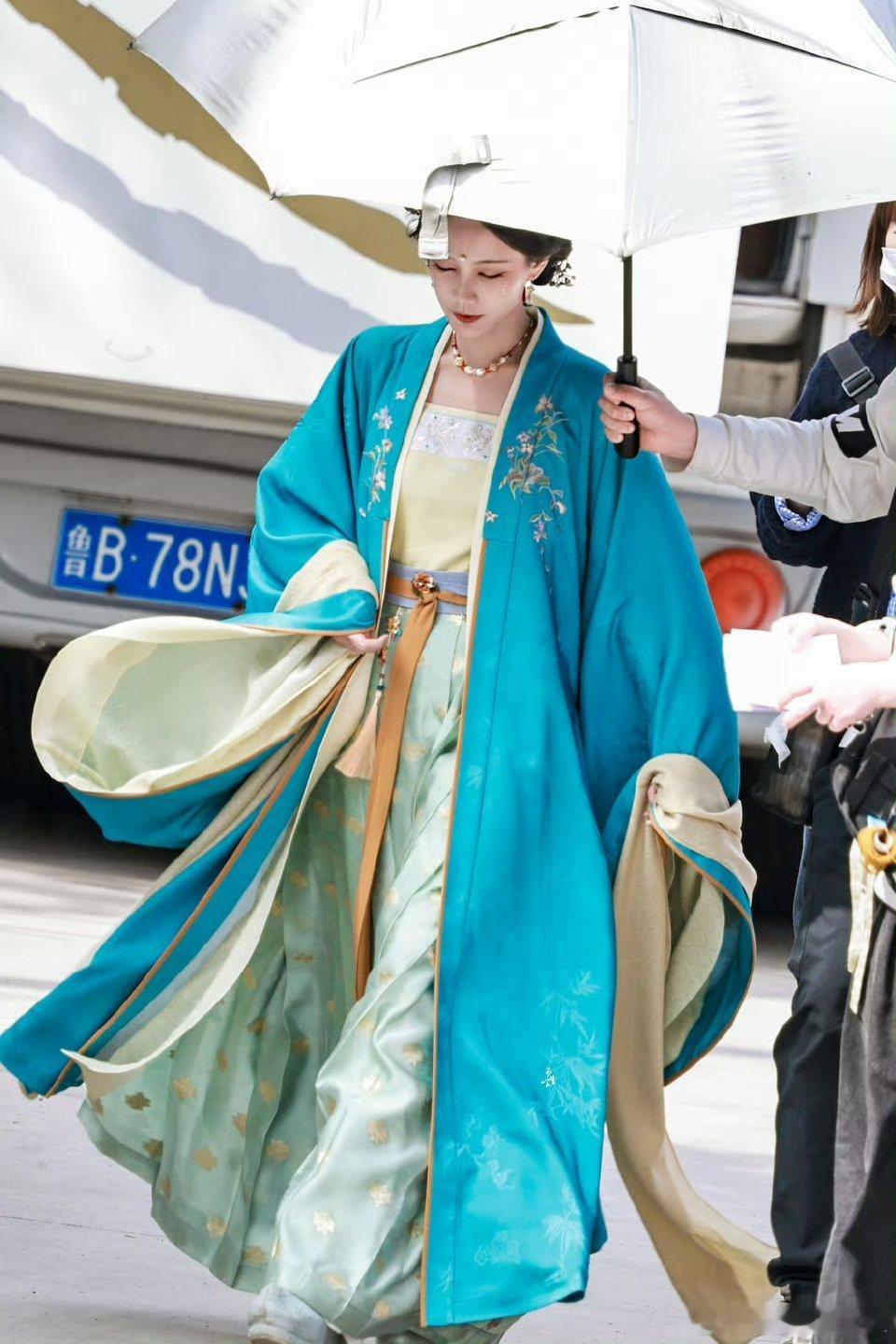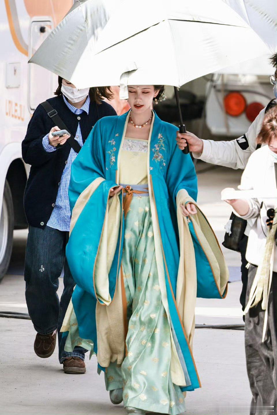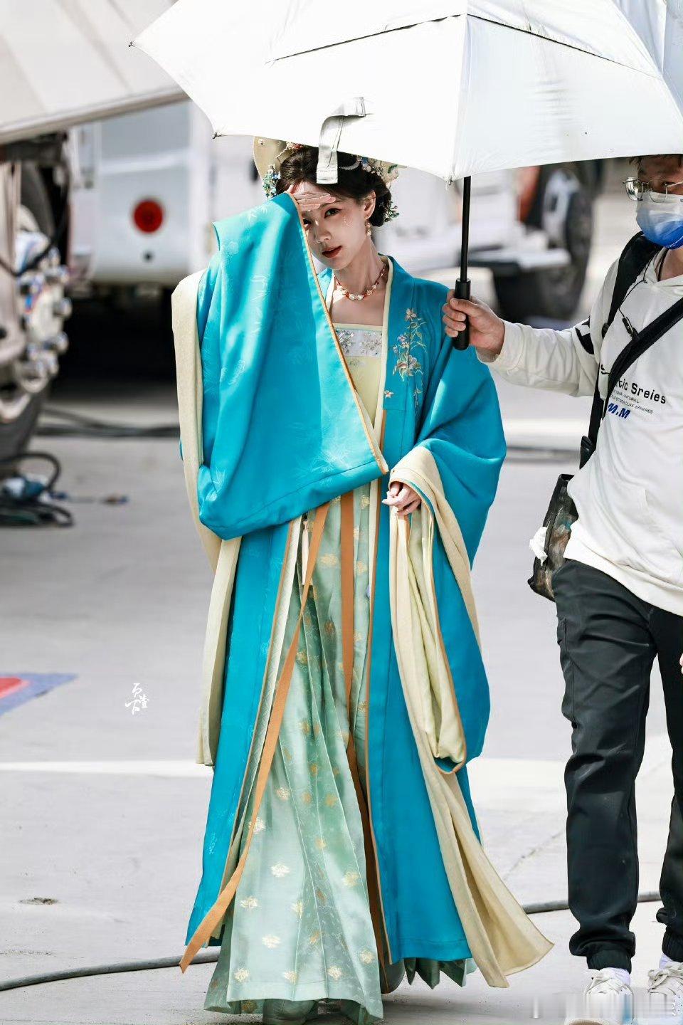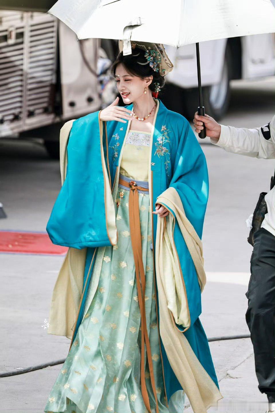 李一桐《金枝》陈雀儿蓝衣路透,古言氛围感十足!!
