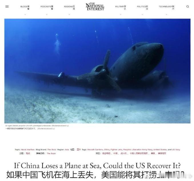 美军欲打捞中方坠毁战机?美《国家利益》杂志撰文称,可逆向分析先进技术!