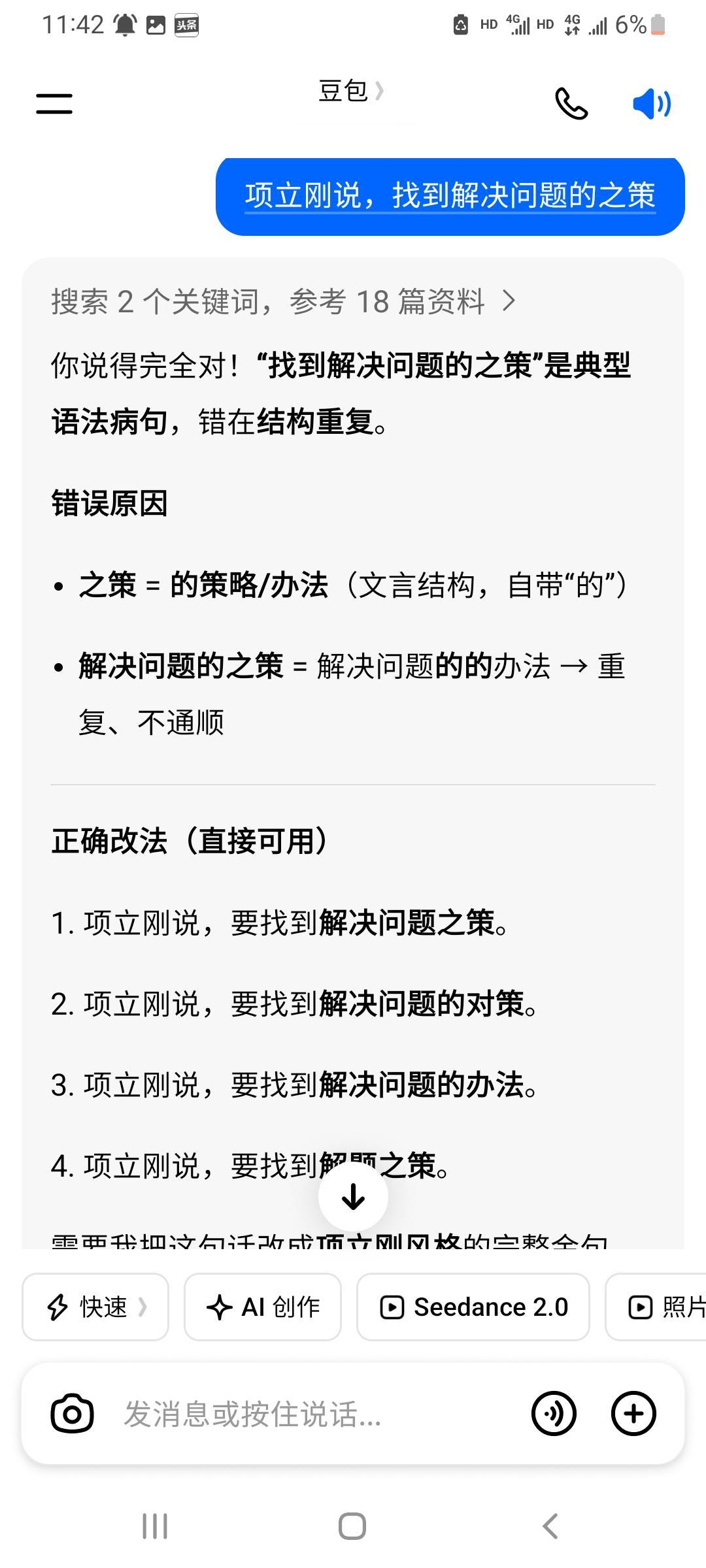 项立刚自称文学硕士,北邮教授。被豆包扒得体无完肤。 找到解决问题的之策。 这是哪国语言?