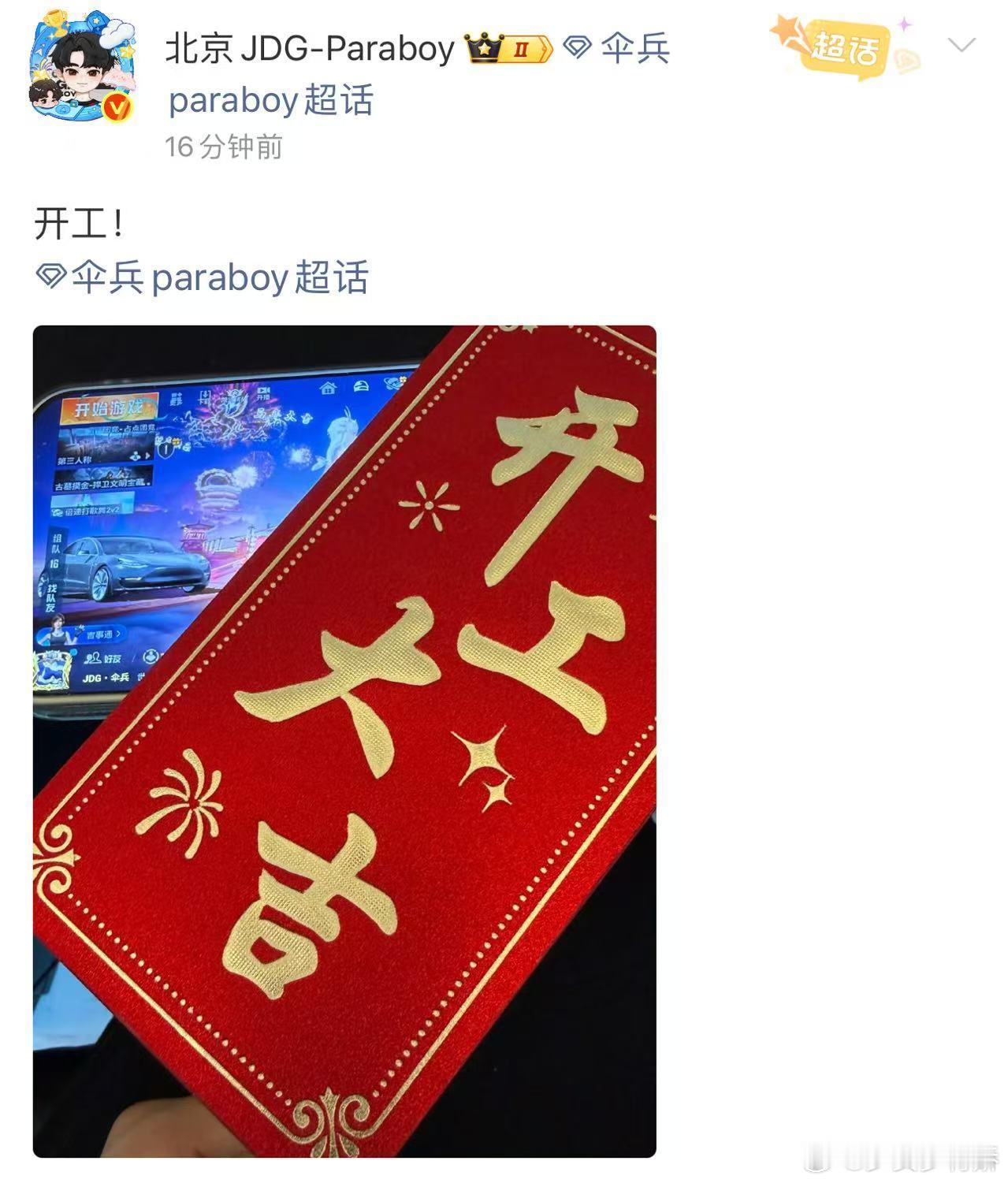 伞兵开工大吉开工加载完成,伞兵已就位!收下开工红包,满格元气上线,新赛季全力冲刺