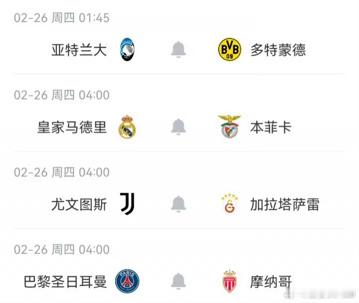 目前欧冠16强已经有12席确定,明晨皇马、尤文、巴黎、多特等队将出战,决出最后四个16强名额。