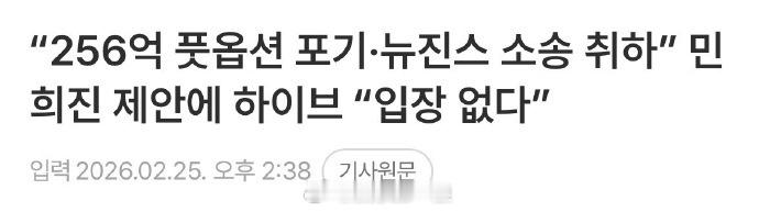 HYBE回应闵熙珍放弃255亿赔偿 HYBE就闵熙珍记者会相关内容表示:“没有立场” 。 闵熙珍放弃255亿韩元赔偿