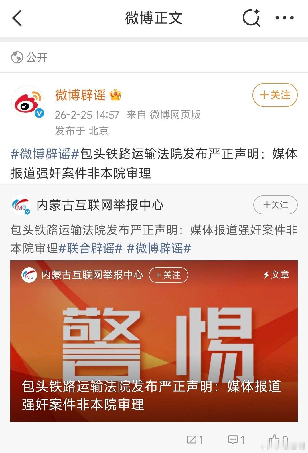 2026年2月25日,微博辟谣称包头铁路运输法院严正声明,此案不是他们审理的。