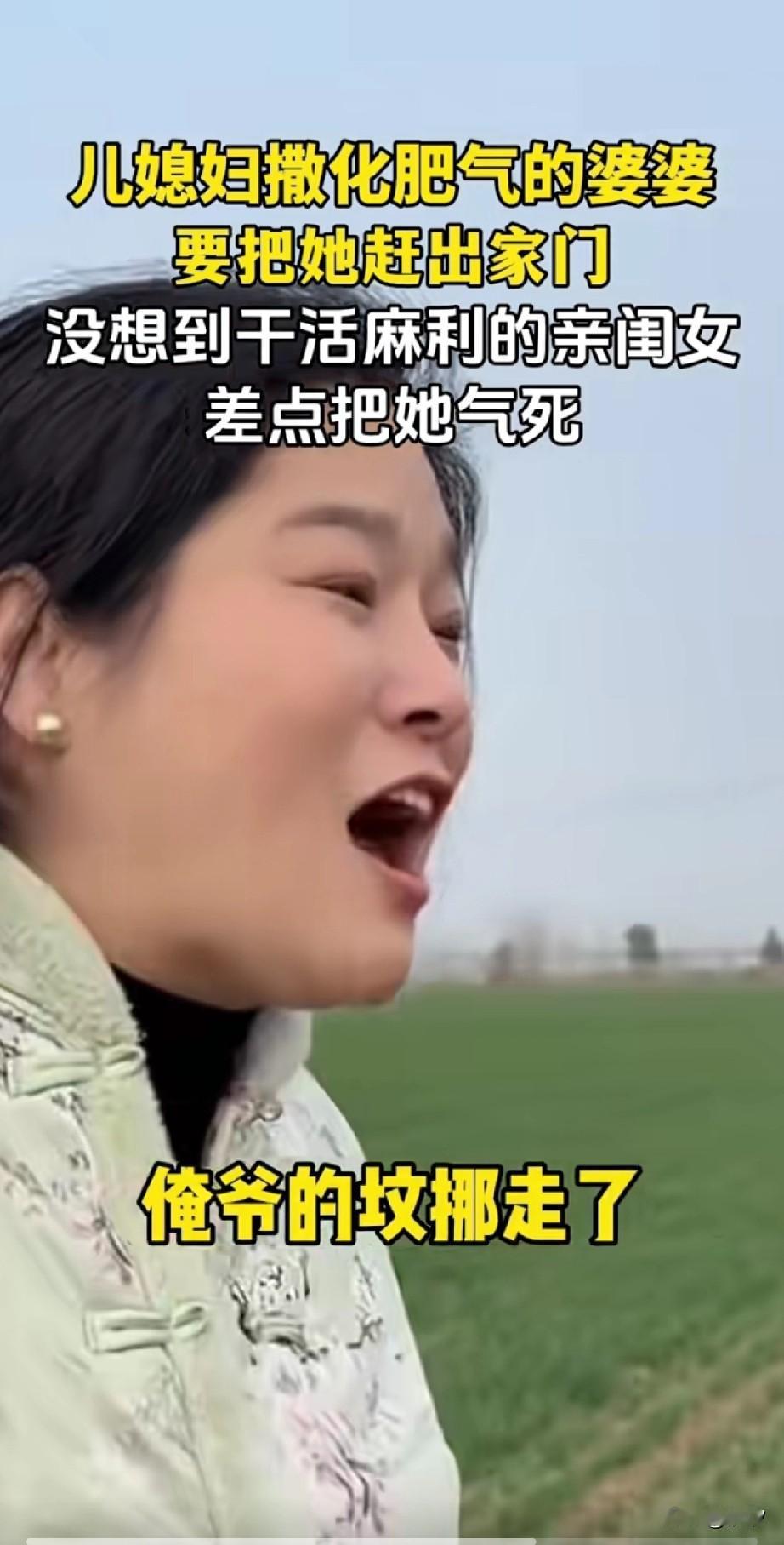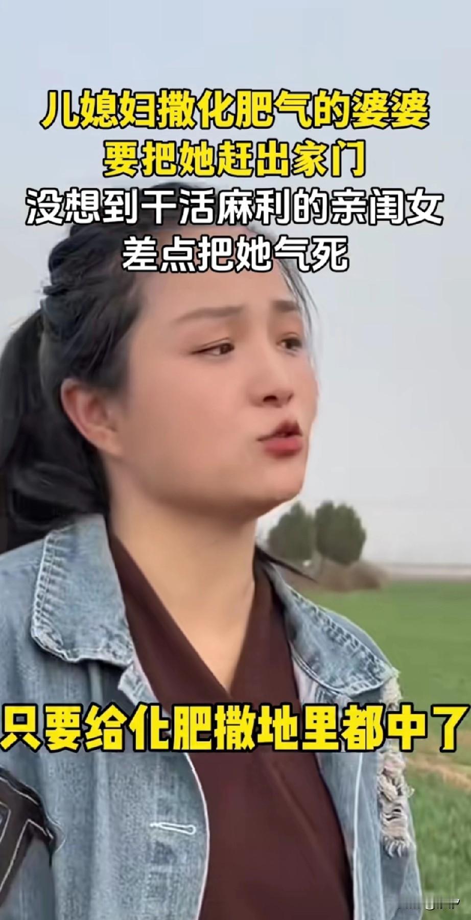 儿媳妇和婆婆一起下地撒化肥, 没想到刚干了一会, 她的婆婆就对她怒目圆睁, 说让她赶紧走吧, 不想要有他这样的儿媳妇, 儿媳妇一脸委屈, 说我走了,你怎么办? 婆婆说自己还有亲闺女呢? 儿媳妇儿有点儿难过, 说还是你闺女亲, 婆婆说瞧你说的那话, 看看你撒的化肥? 镜头一转差点把人气死, 这化肥直接把麦子都盖住, 儿媳妇儿委屈巴巴的说, 妈,不是你说的啥地理都行了! 这个时候婆婆的亲闺女走过来了, 别他妈说你,六亩地我都干完了, 我爷的坟挪走了吗? 这时候婆婆才看了过去, 突然意识到了什么不对, 她的亲闺女也意识到了, 可能是把化肥撒到别人家地里了, 看不惯儿媳妇儿干活, 亲闺女差点把她气死, 这一家子人太逗了!