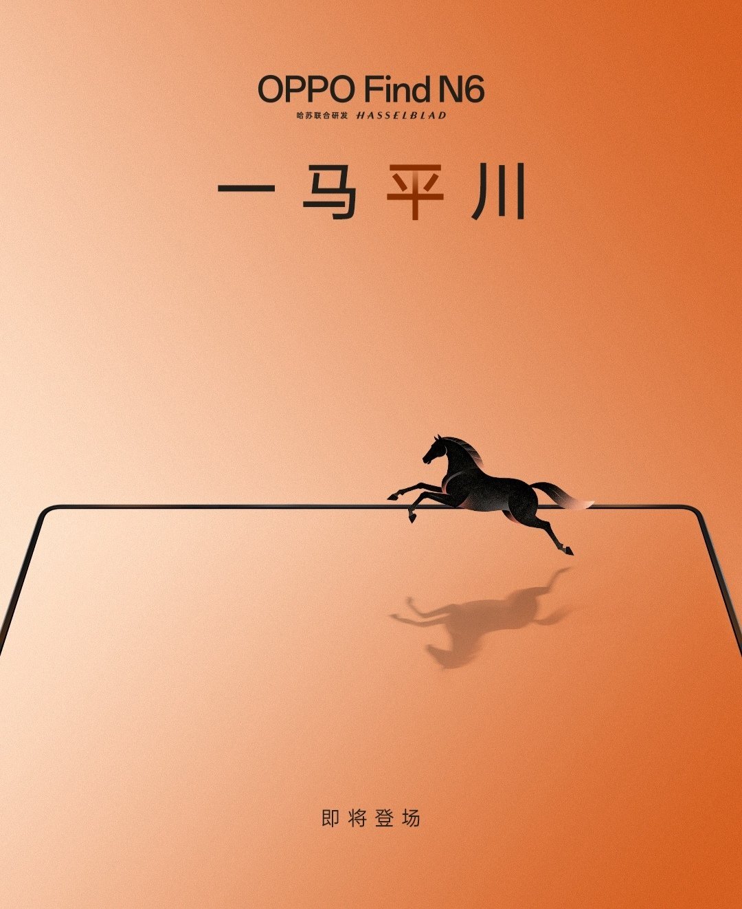 目前,OPPO Find N6 折叠屏手机已官宣“即将登场”,宣传语为“一马平川”。结合海报概念图来看,新机将主打浅折痕设计。另外,预热海报还提到了“哈苏联合研发”。由此来看,OPPO Find N6 折叠屏手机将延续哈苏影像方案。