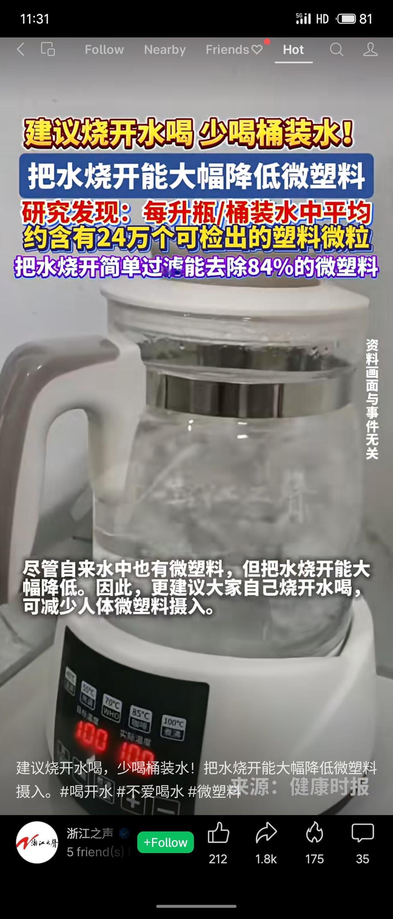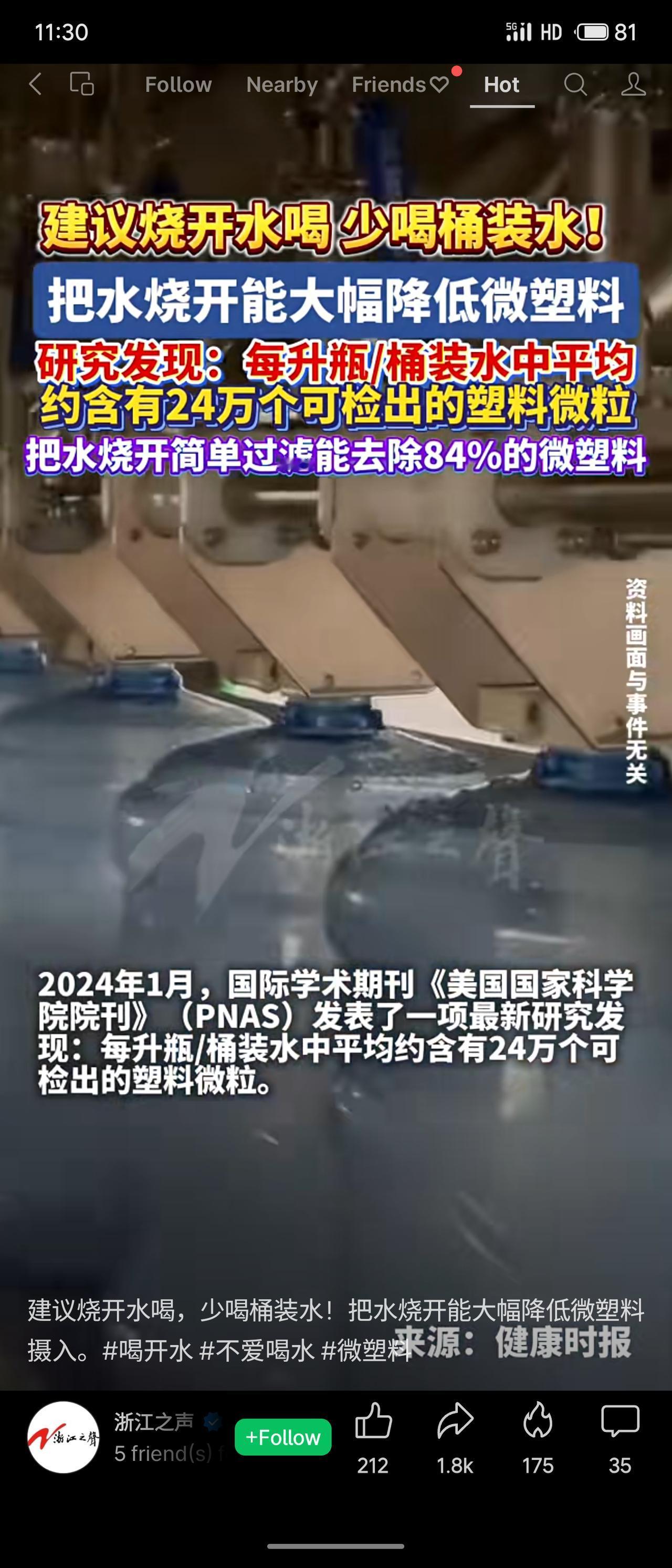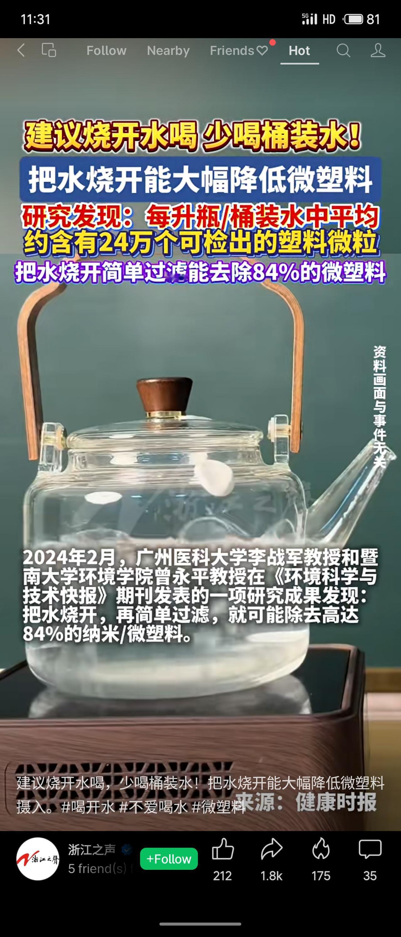 建议少喝桶装水、多喝烧开的自来水。研究发现,每升桶装水平均含约24万个塑料微粒,烧开后简单过滤可去除84%的微塑料,减少对人体(包括胎儿)的潜在危害。 该建议基于2024年多项权威研究(如PNAS及国内学者成果),数据可信,方法简单易行。微塑料可通过肠道、肺部进入血液甚至胎盘,影响健康。烧开水作为低成本、高效的净化手段,值得推广,尤其适合家庭日常饮水。