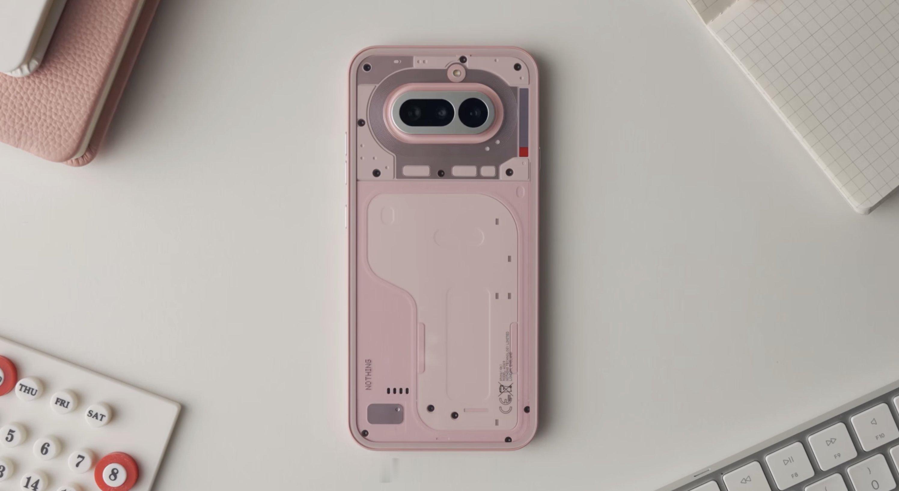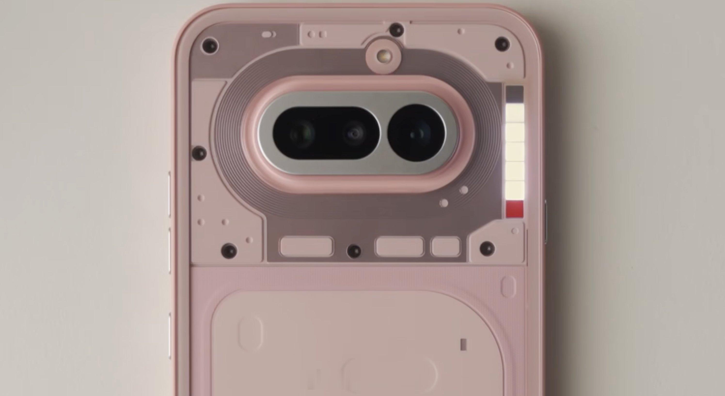 粉色的Nothing Phone 4a,如何?而且这代的Glyph 改成摄像头旁边竖着的几个灯了