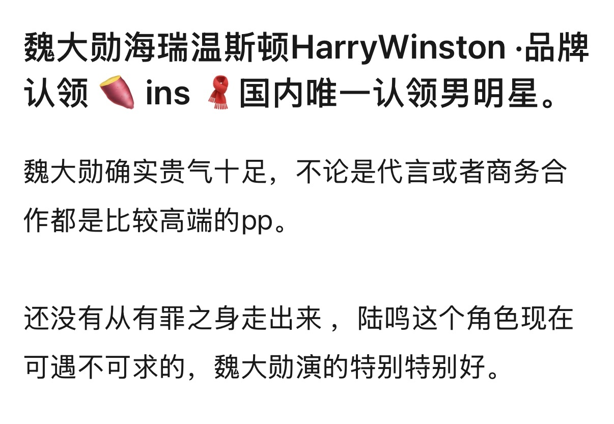 魏大勋海瑞温斯顿HarryWinston•品牌认领ins&🍠和微博国内唯一认