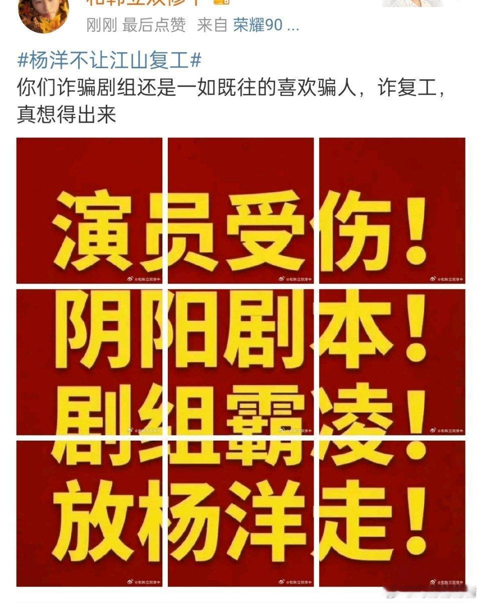 杨洋不让江山复工工作室已安抚粉丝了,但粉丝还是不依不饶的维权,那可能是开机了就得开工,难道让全剧组等着?新剧妆造倭风引发争议,为什么粉丝口中的长虹十年现在待遇这么差?不是粉丝广而告之,网友还不知道,真是一声叹息啊