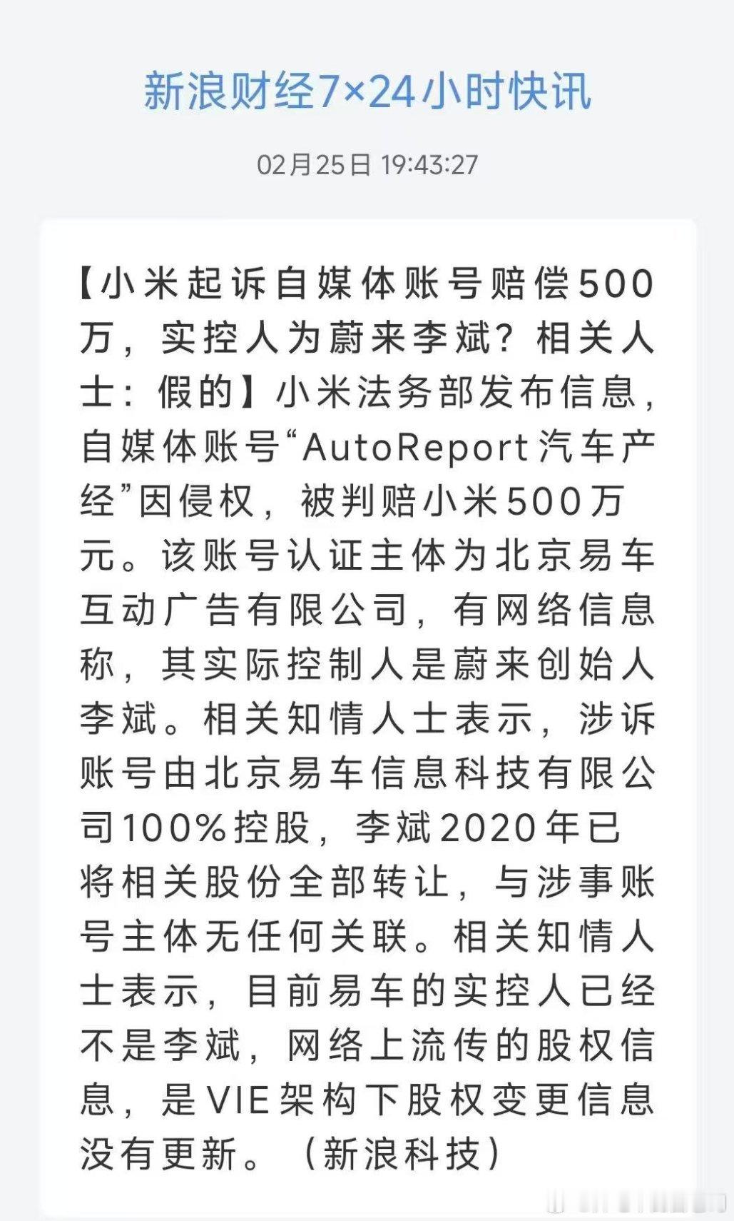 李斌2020年把手上仅有的股份卖给腾讯后(传说中的卖易车救蔚来),已经没有易车的实控权和股份了,我也是差不多那时候离开的。现在的易车早已经被腾讯私有化,现在易车的运营主体其实是“腾易科技”