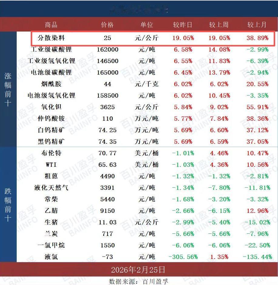 分散染料盘后跳涨19%!节后2-3月是染料旺季,且A股当下正值涨价题材风口。(图三,每次价格调整前后都有板块涨停潮,开盘啦价格滞后盘中) 浙江龙盛:全球染料与纺织化学品龙头,在分散染料领域市场占有率超过30%,是当之无愧的行业龙头。公司拥有染料总产能约30万吨/年,经过多年技术研发与积累,一体化自给率高,成本壁垒显著。 闰土股份:与浙江龙盛并列为分散染料行业双龙头,两家公司分散染料的产销量在市场中的占比超过半数。闰土股份染料年总产能近21万吨,其中分散染料产能11万吨/年,活性染料产能8万吨/年,稳居国内染料市场份额前二位。