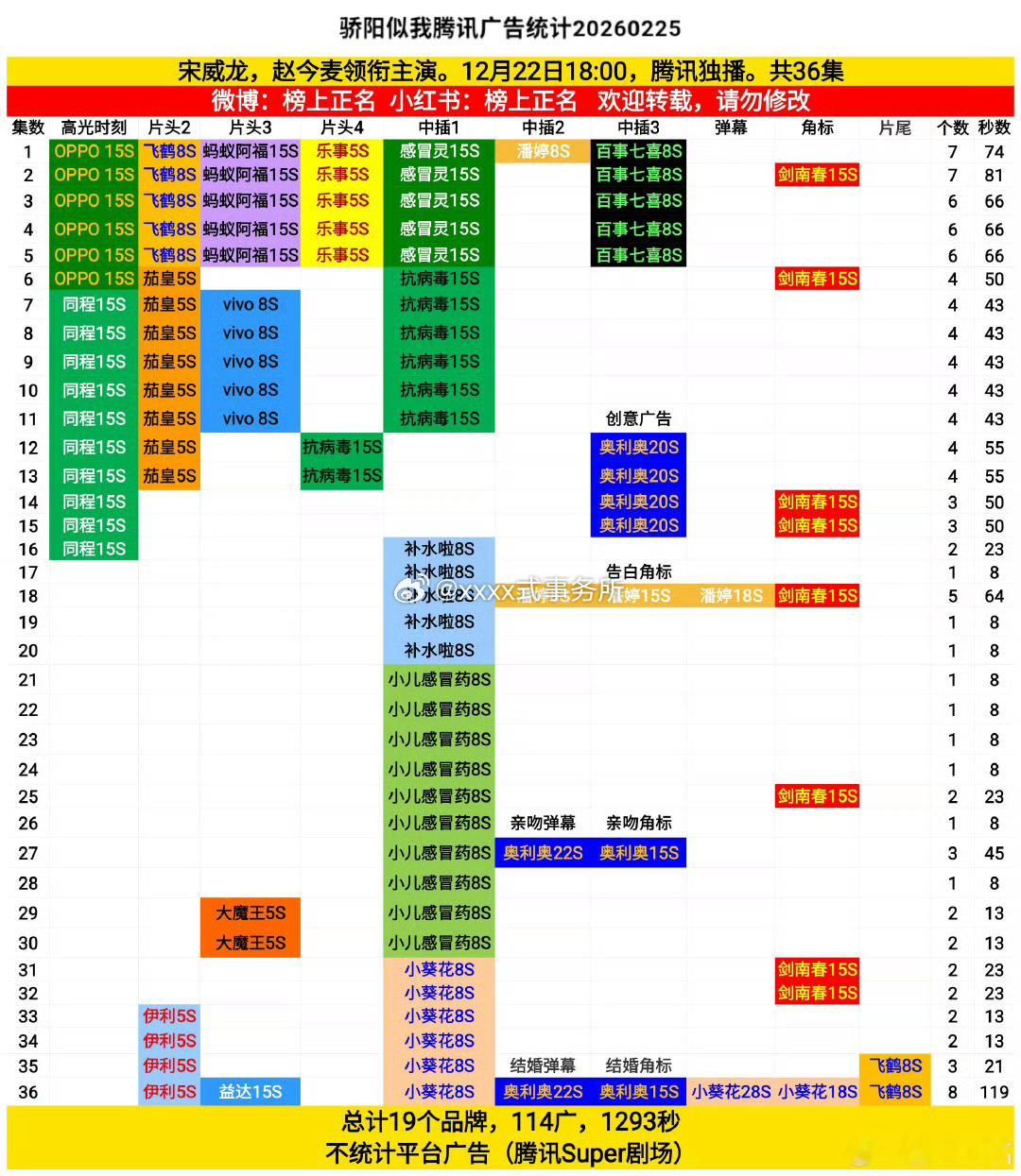 宋威龙赵今麦骄阳似我腾讯再加1广,总时长达1293秒,热播期过后的三次加广了