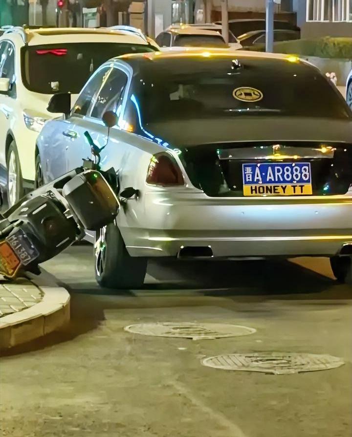 开年即遇王炸,电动车歪倒在劳斯莱斯上,电动车主估计都不敢认领了,光看劳斯莱斯车牌号,也足以让人瑟瑟发抖,但是电动车有牌照,总能找到车主,估计躲是躲不掉了。