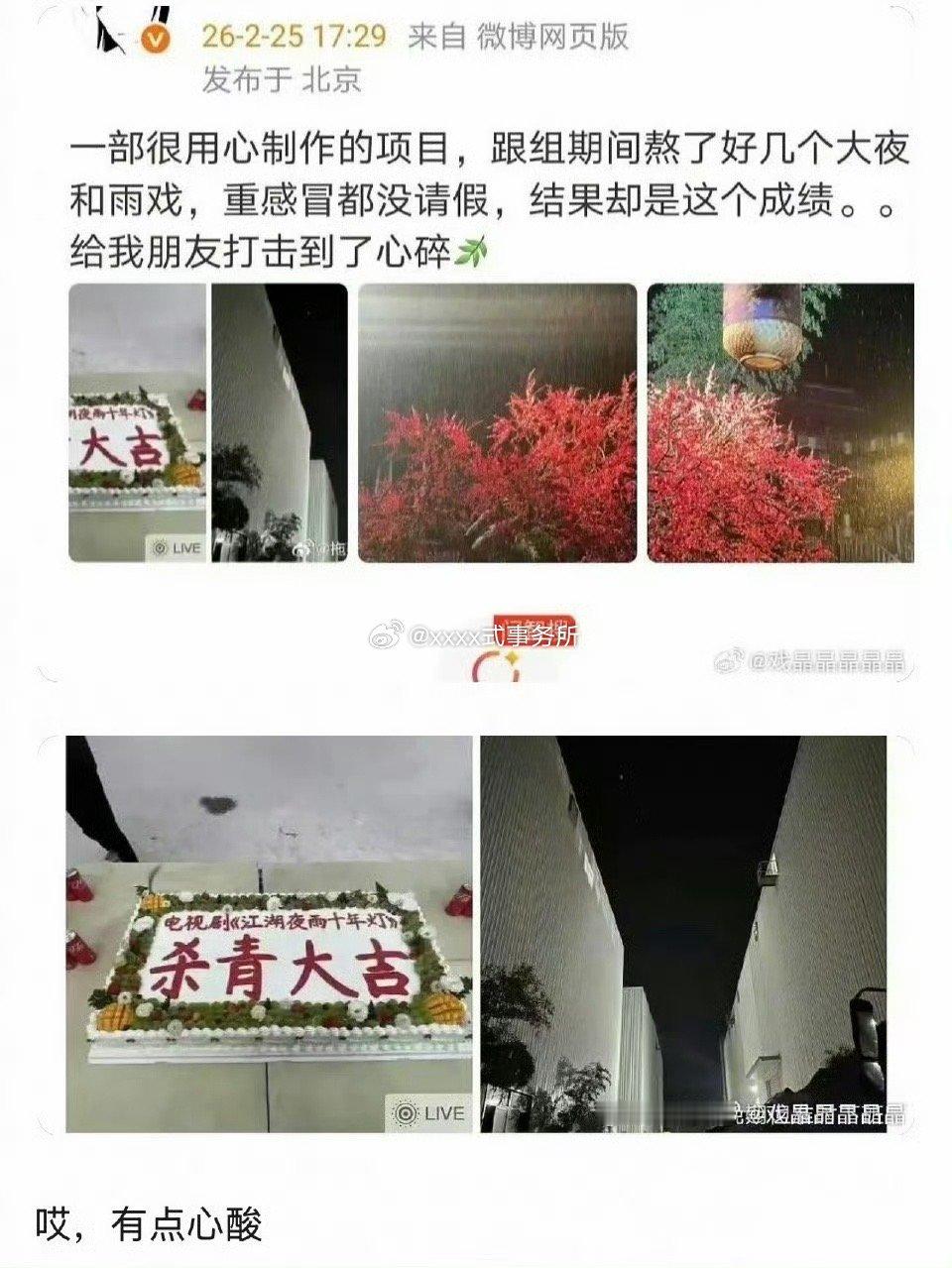 疑似业内哭诉自己拍的《江湖夜雨十年灯》大扑街 真业内真的会这么直白的说出来吗 不会得罪平台和演员吗...