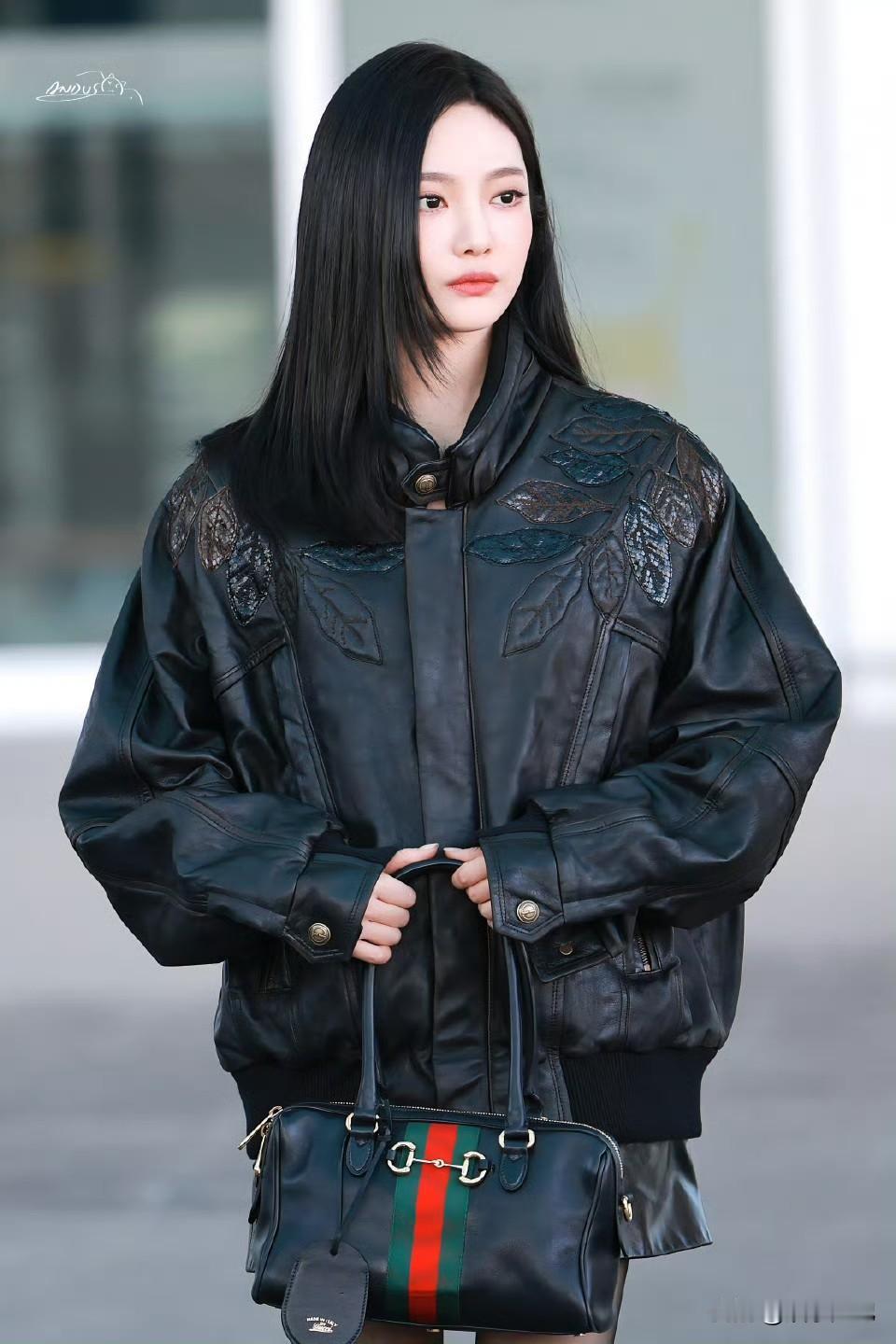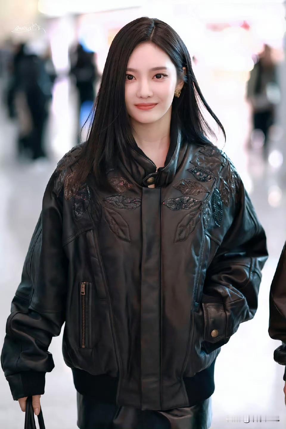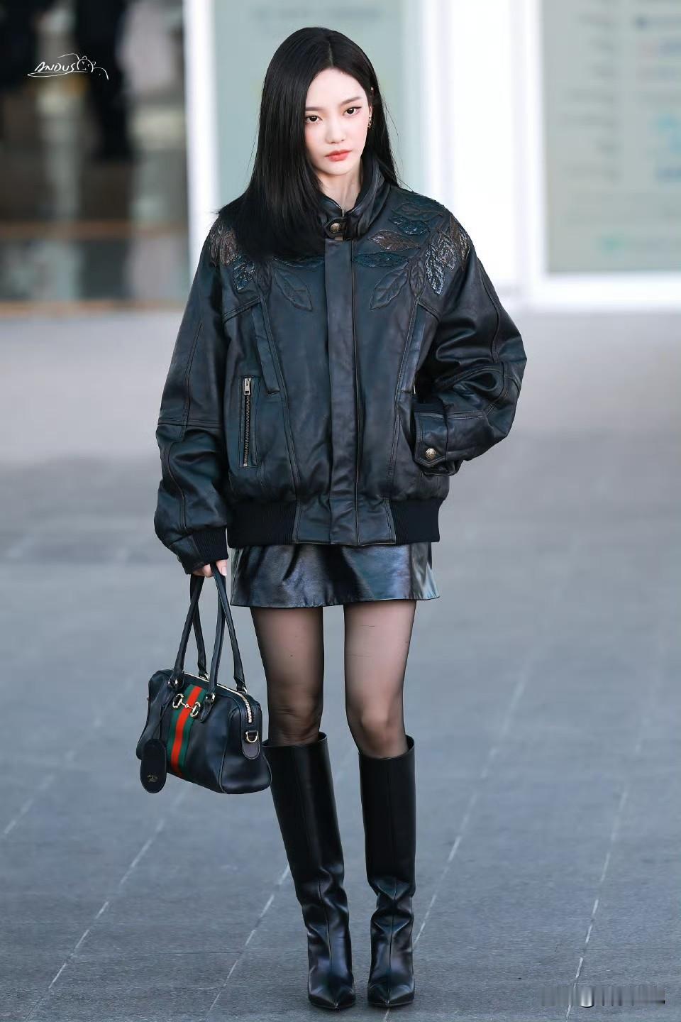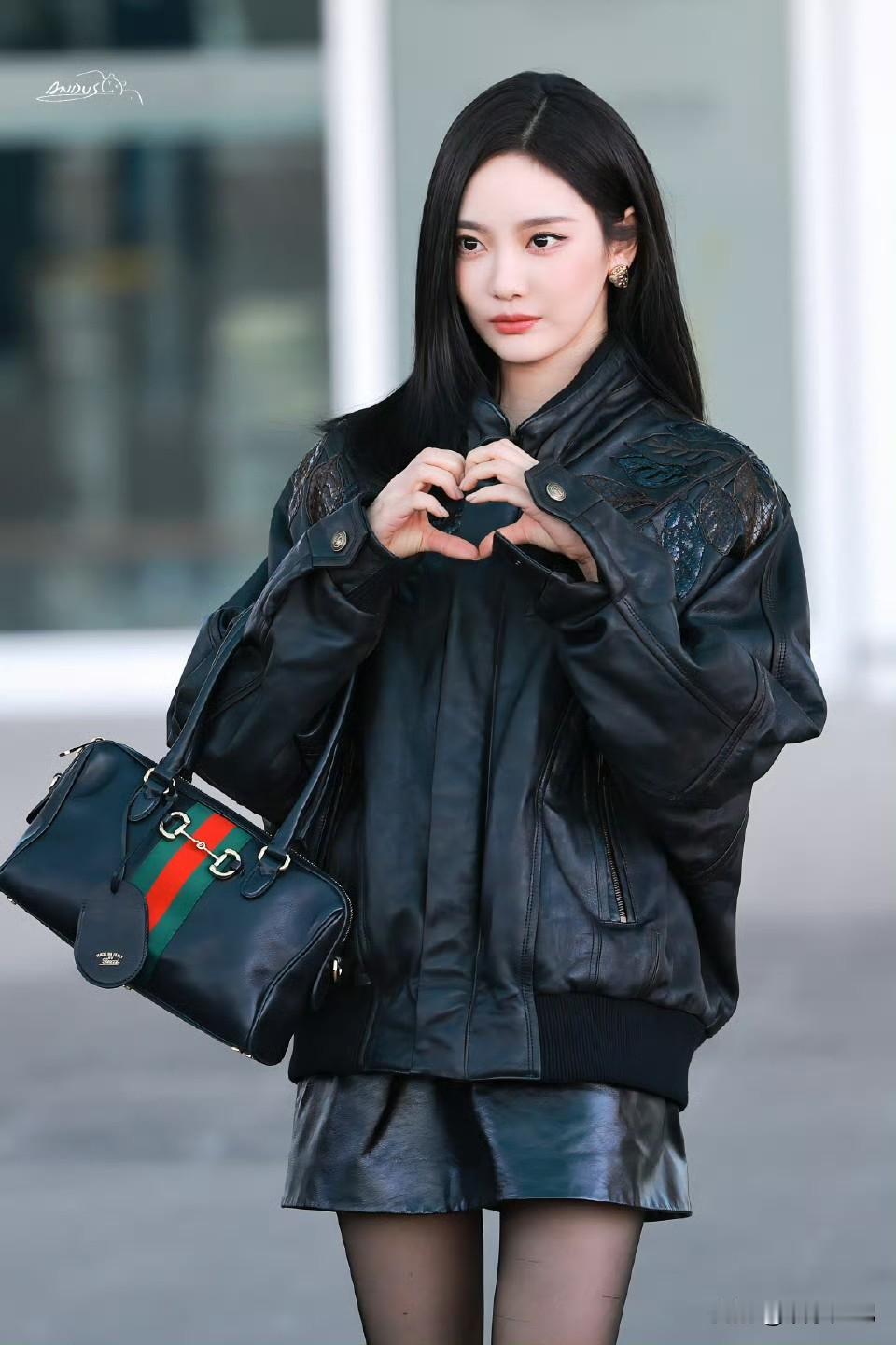 宁艺卓出发前往米兰时装周GUCCI大秀,亮相机场OOTD黑丝皮裙~小宁宁好火辣?