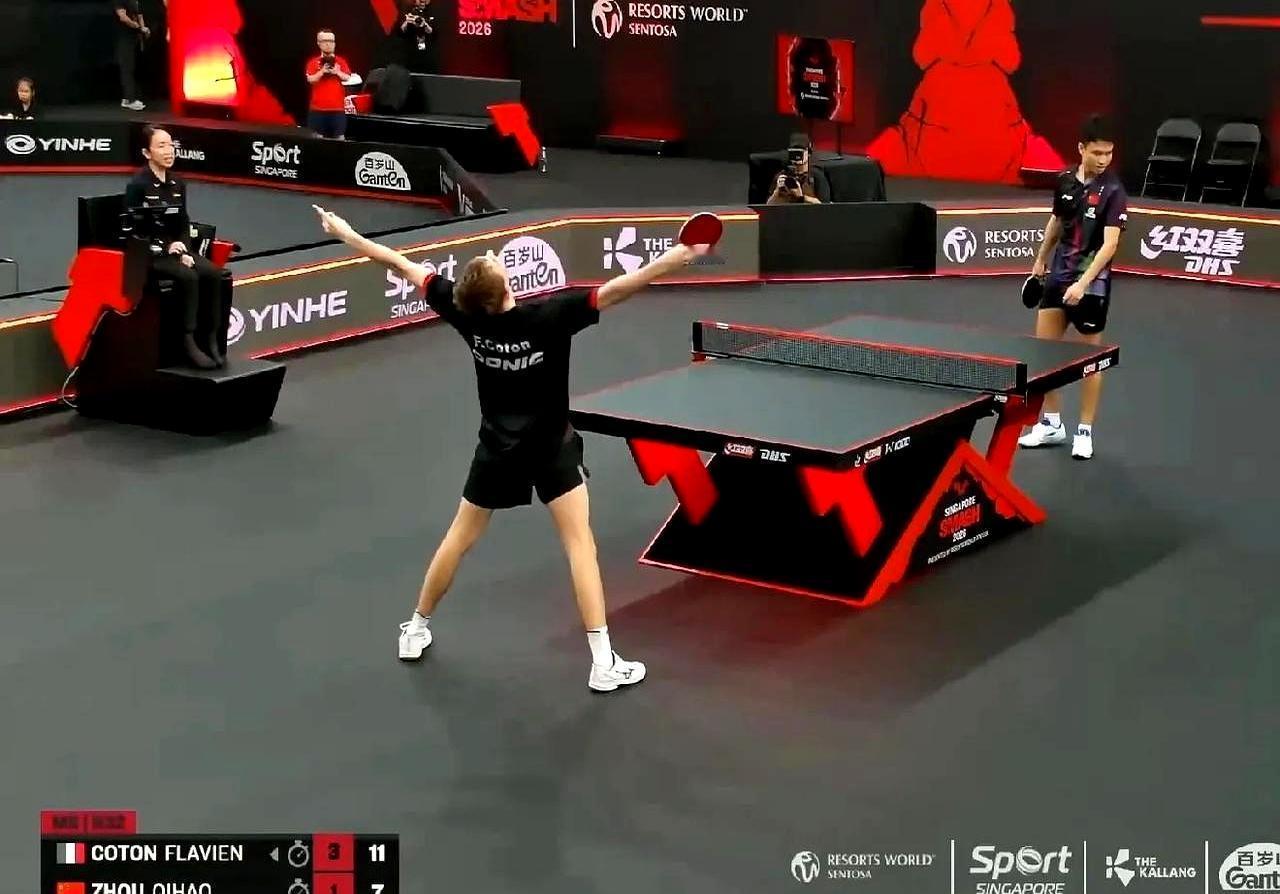 国乒又爆大冷!刚拿完冠军的周启豪,被一个17岁法国小孩连扳三局,反手快撕直接把他打蒙了。 第一局周启豪还8-10落后翻盘,你以为稳了?结果对面那小孩心态一点没崩,第二局开始,上手就是搏杀,根本不跟你多啰嗦。 问题出在哪?周启豪的相持球其实不落下风,但就是防不住科顿的前三板。人家反手拧拉、快撕,速度快角度刁,周启豪一被动,节奏就全乱了。 这场球输的不是技术,而是对新生代冲击的警惕。国乒真正的对手,从来不是昨天的老将,而是明天那些不知天高地厚的少年。