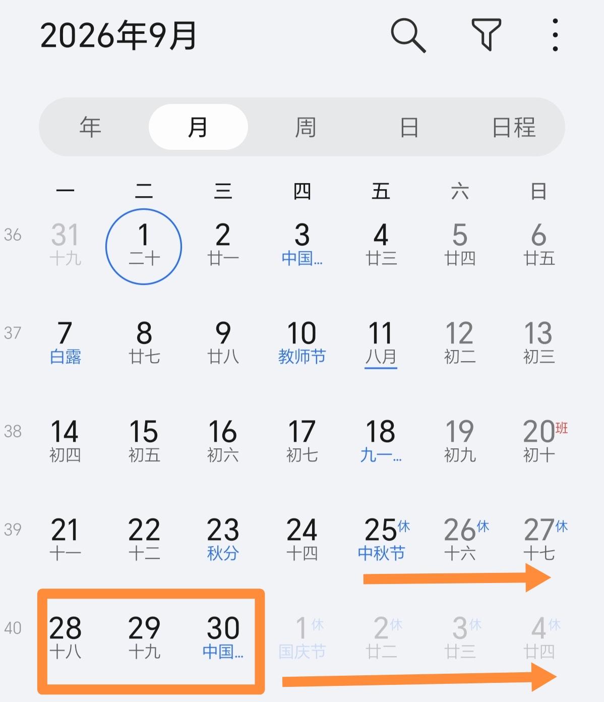 虽然春节假期已经结束了,但是今年还有一个“超级假期”。那就是“中秋+国庆”假期。今年的中秋假期是9月25日至27日,国庆假期是10月1日至7日。 两者中间还有三天上班日。如果这三天,能够跟公司请年休假、或者调休。那么就可以拼凑出13天的“超级假期”。 这样一来,不论是旅游,还是回家陪家人过中秋和国庆,在时间上,都是绰绰有余。当然,这也是一种理想状态。能不能请假或者调休,还是需要看工作单位,生成经营的实际情况来定。
