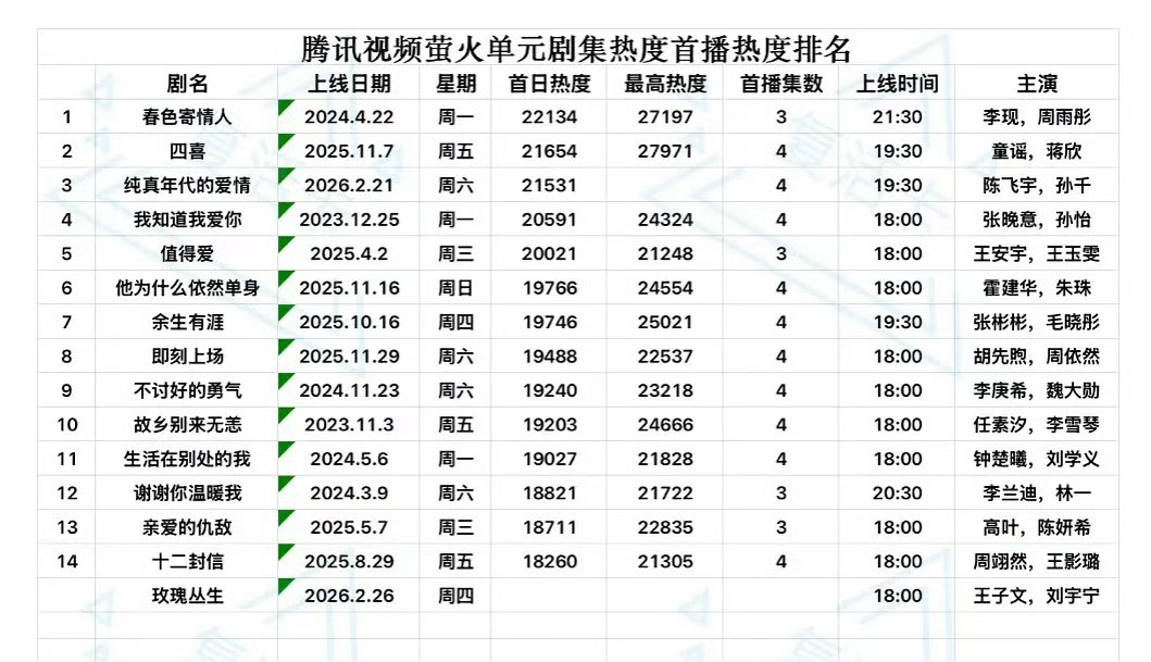 《纯真年代的爱情》破26000了 有望超过李现、周雨彤的《春色寄情人》打响🐧爸爸萤火剧场的厂牌