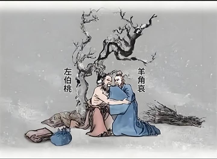 盘古开天结拜交, 何人能比左伯桃, 为友舍命衣粮送, ………? 上联:途中遇风雪; 上联:舍身救义友; 上联:患难效羊左; 上联:手足情深似海; 上联:同心结拜两兄弟; 上联:知音相谈同一处; 上联:情堪义比泰山重; 《历史典故》 战国末期,左伯桃与羊角哀两位贤士相识并结拜为兄弟,共赴楚国谋取前程。 途中遭遇风雪,衣单粮少。左伯桃深知两人同行必共死,毅然将衣物与粮食尽数留给羊角哀,以保羊角哀安全到达楚国。自己则裸身藏于枯树之中冻饿而死! 成语……《舍命之交》。便由此而来,源自左伯桃与羊角哀的典故,属于“八拜之交”之一。