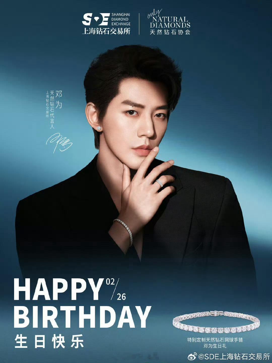 上海钻石交易所:天然钻石代言人邓为戴的手链是特别定制的专属生日礼,好有心意的手链。大钻石霸霸好宠呀邓为0226生日快乐
