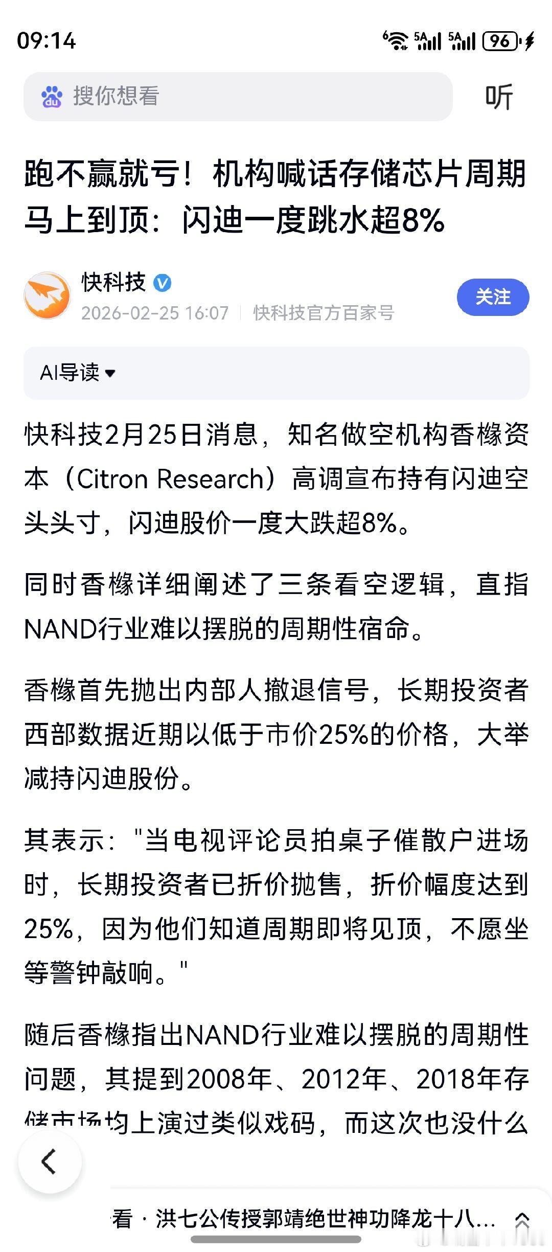 闪迪股价,累计涨幅非常大了。后市调整为正常,创新高反而是奇迹。存储芯片紧缺,会拉