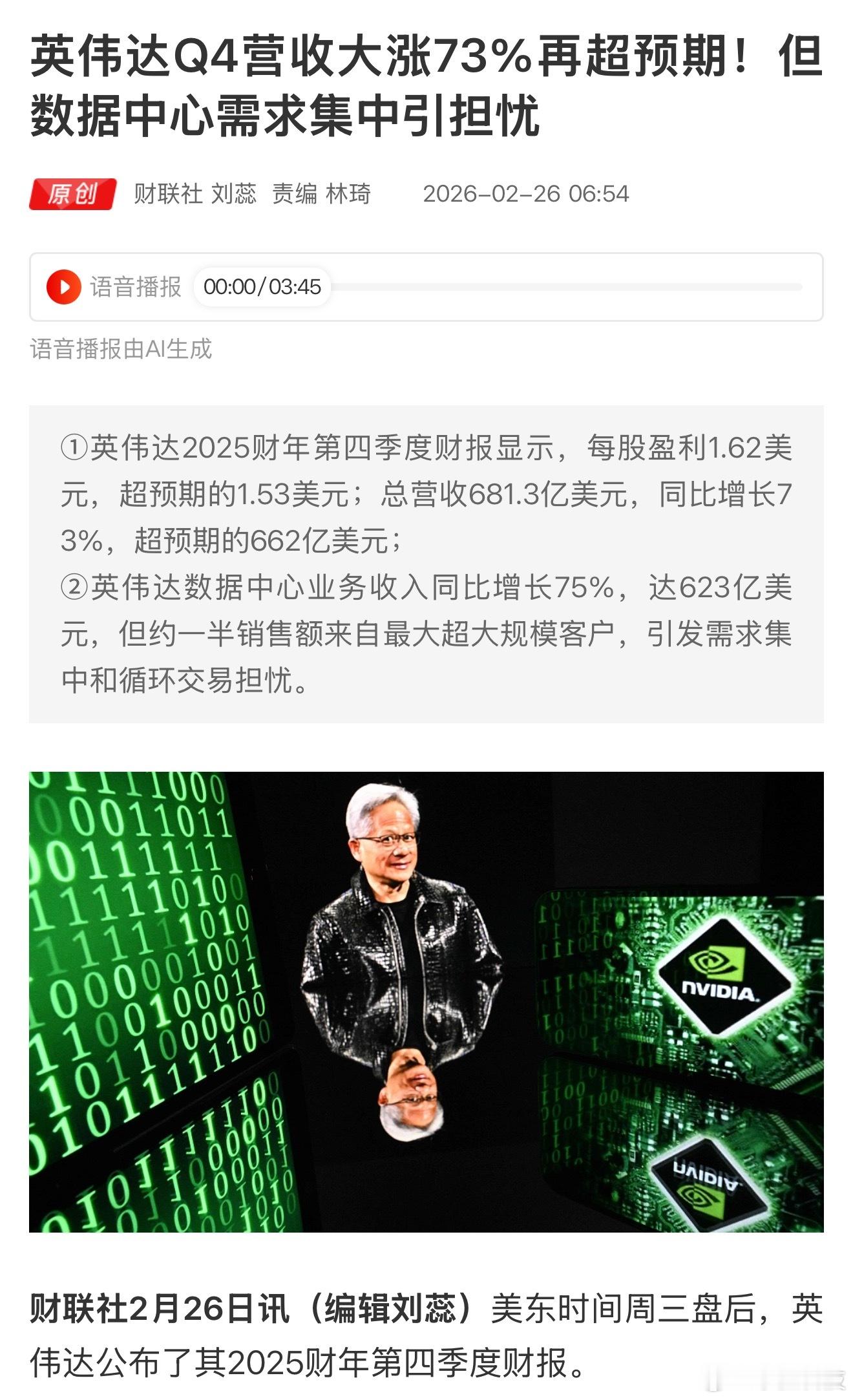 英伟达四季度营收681亿美元原来OpenAI ms 英伟达在那循环投资,现在Anthropic Amazon也加入进来了。。没有新钱源源不断来,老钱一直运转,对预期兑现的要求会变高。这次财报公布后盘后拉高3个点然后跌了…