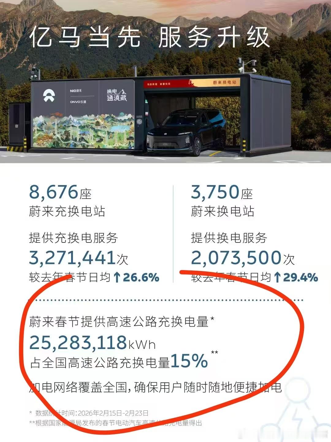 蔚来春节期间加电报告出来了,重点看一个数字:高速充换电量占比全国15%,这数字含金量十足!