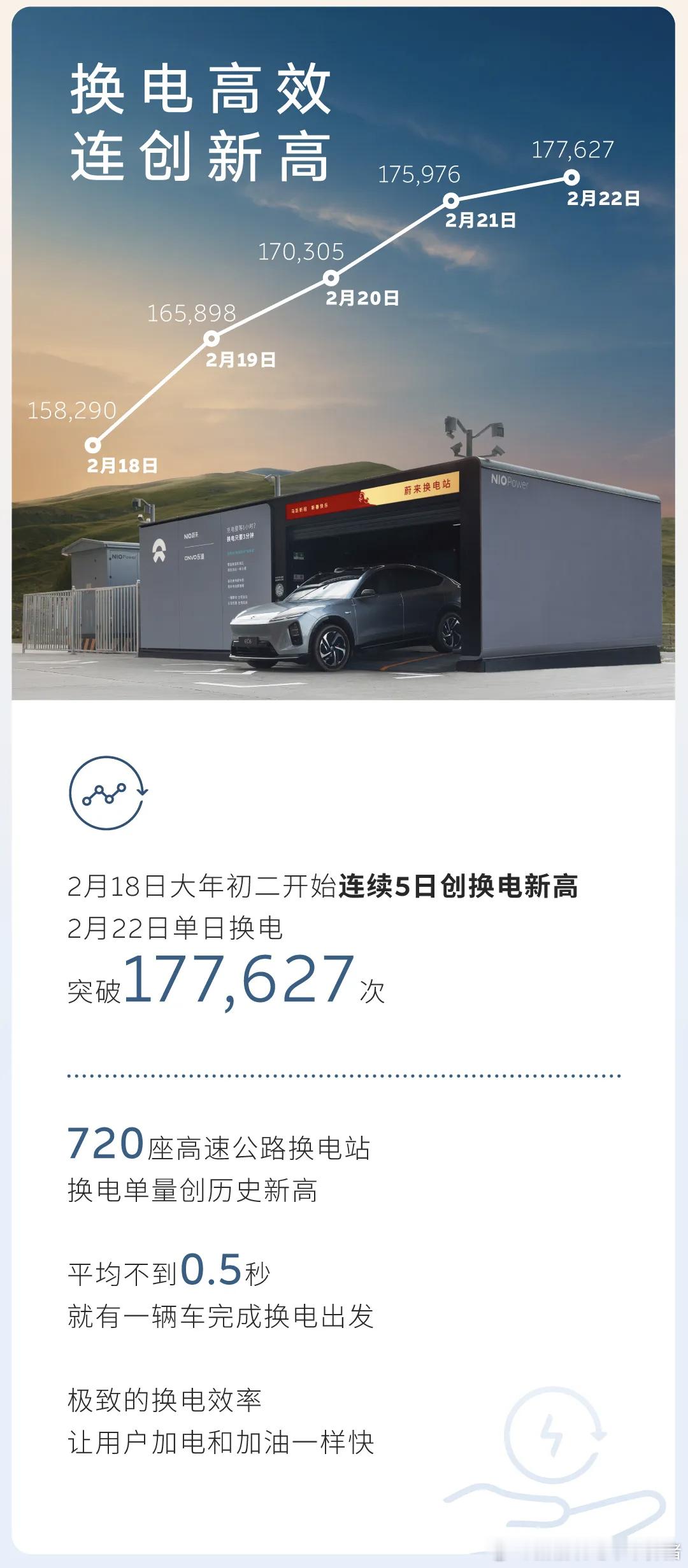 要知道春节是电动车补能压力最大的时段,全国高速充换电量中蔚来独占15%,相当于每7度电就有1度来自蔚来网络。这背后是近8700座充换电站的坚实布局,以及单日最高超17.7万次的换电服务能力⚡