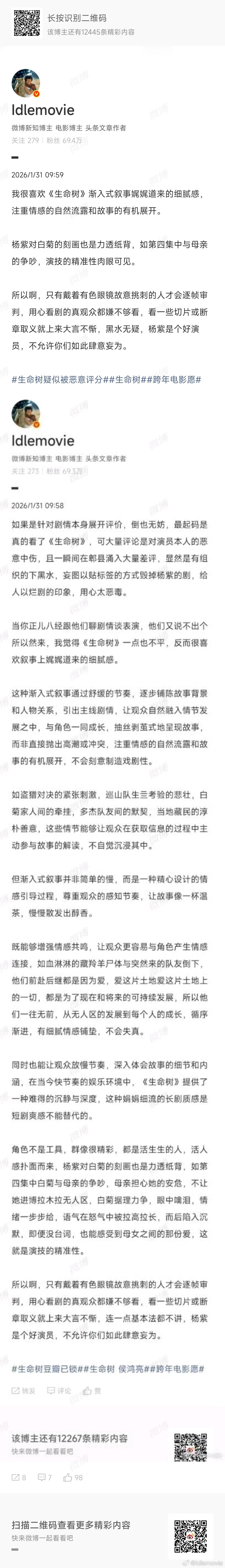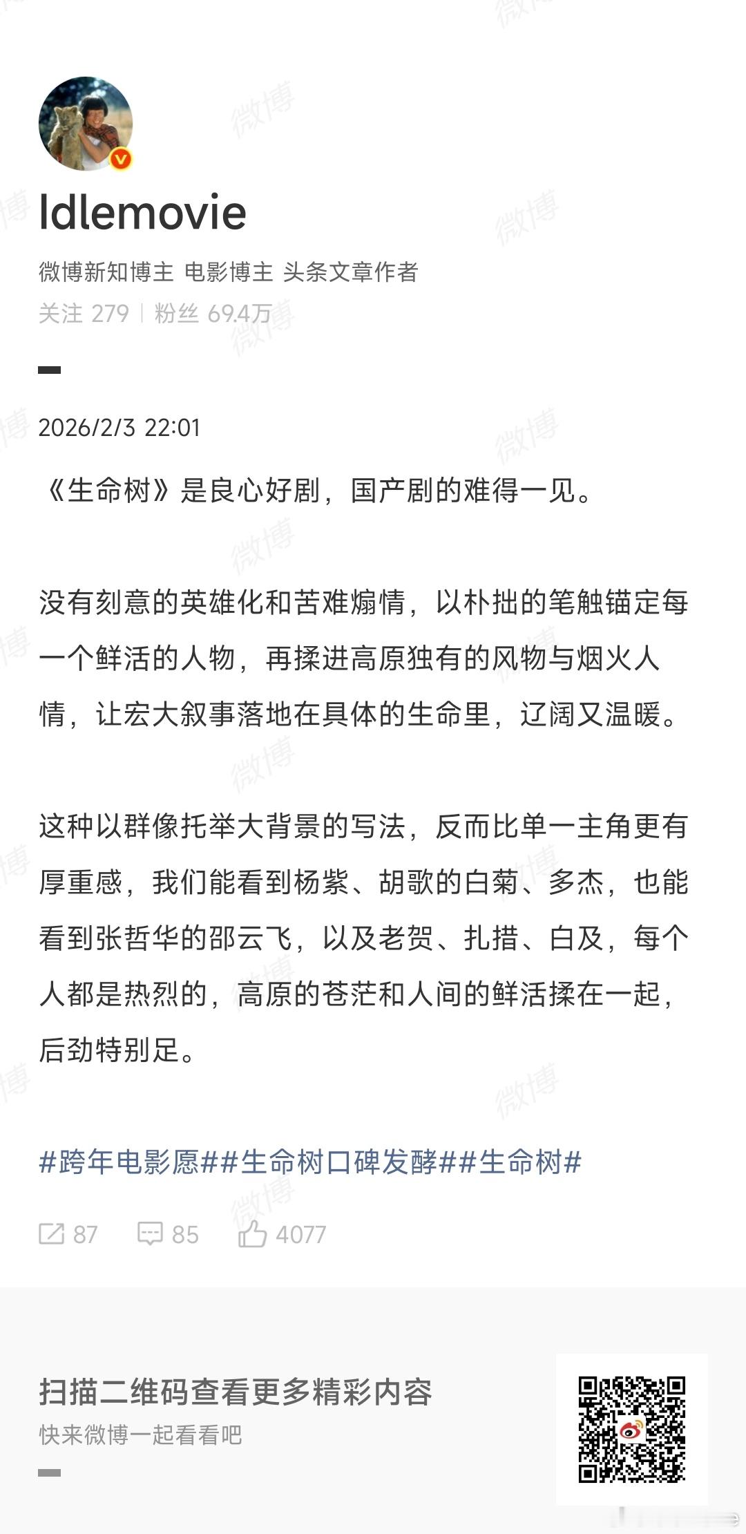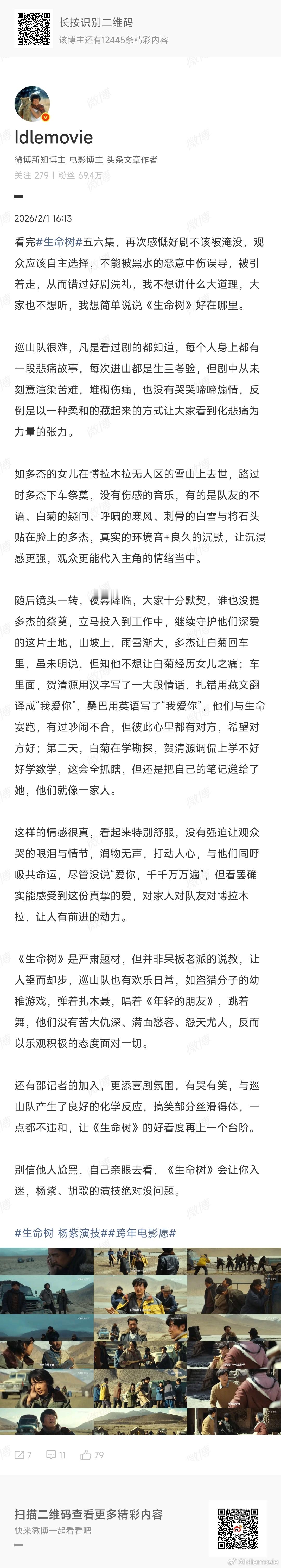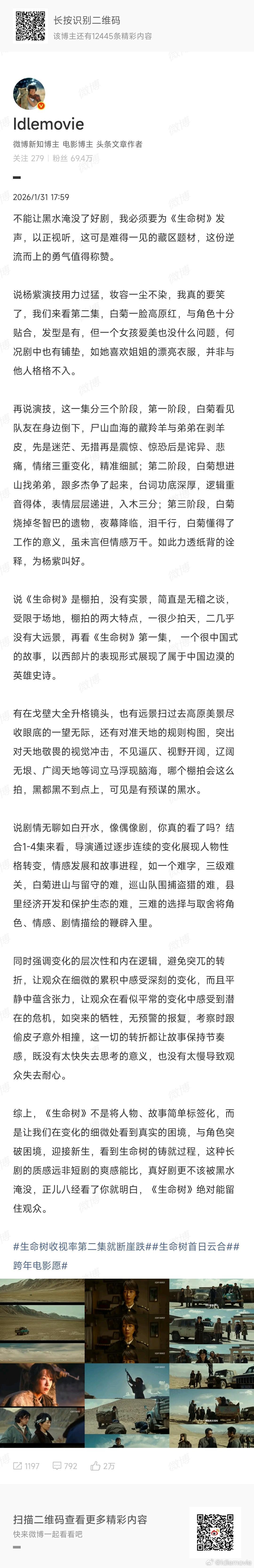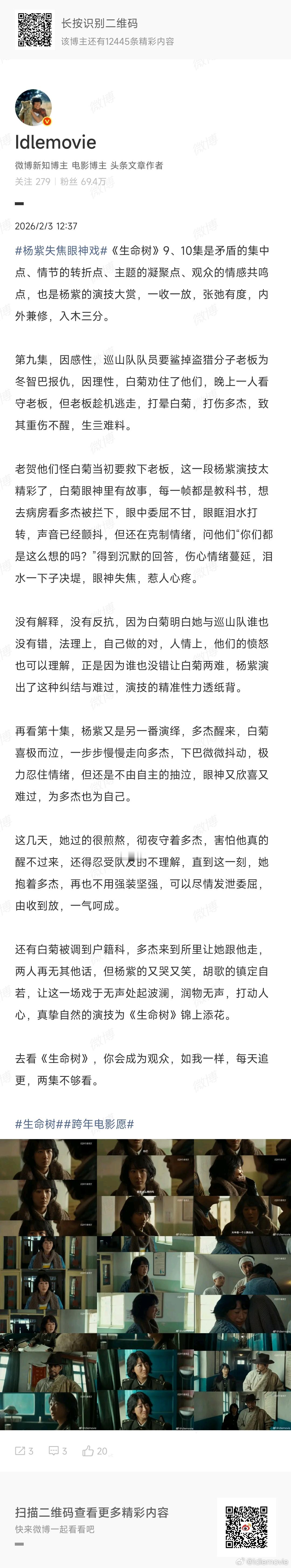 作为自来水,从头到尾都在力挺《生命树》,一起度过了漫长黑夜,迎来8.3分,期间,写了28篇长剧评,但微博最多发18张图,忍痛割舍了10篇,希望有助于大家N刷。