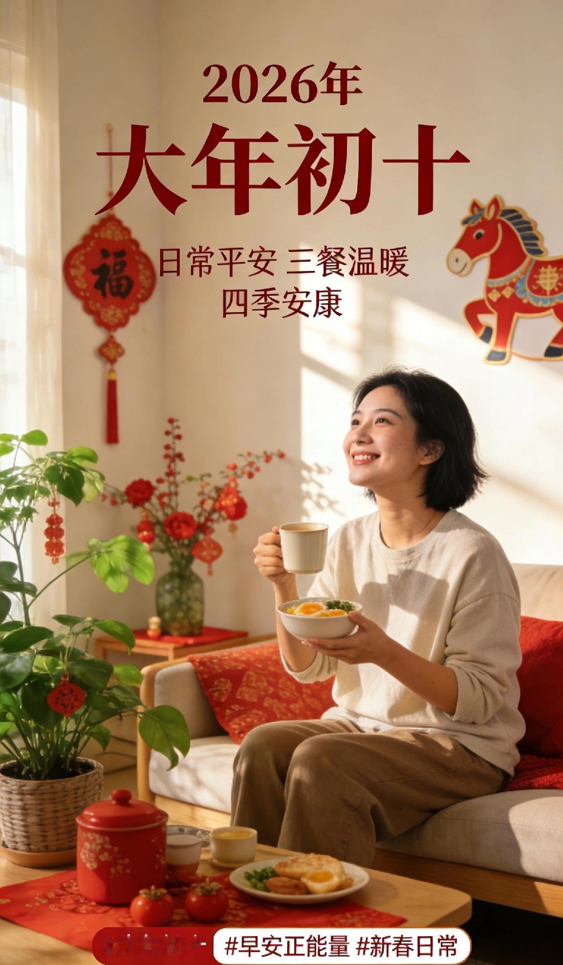 大年初十,年味未散,暖意常在🌿 不必追求轰轰烈烈, 只愿日常平安,三餐温暖,四季安康。 把烦恼留在昨天,把欢喜装进行囊, 新的一天,轻装上阵,向阳而行。 愿所有美好,都如约而至。 大年初十 早安正能量